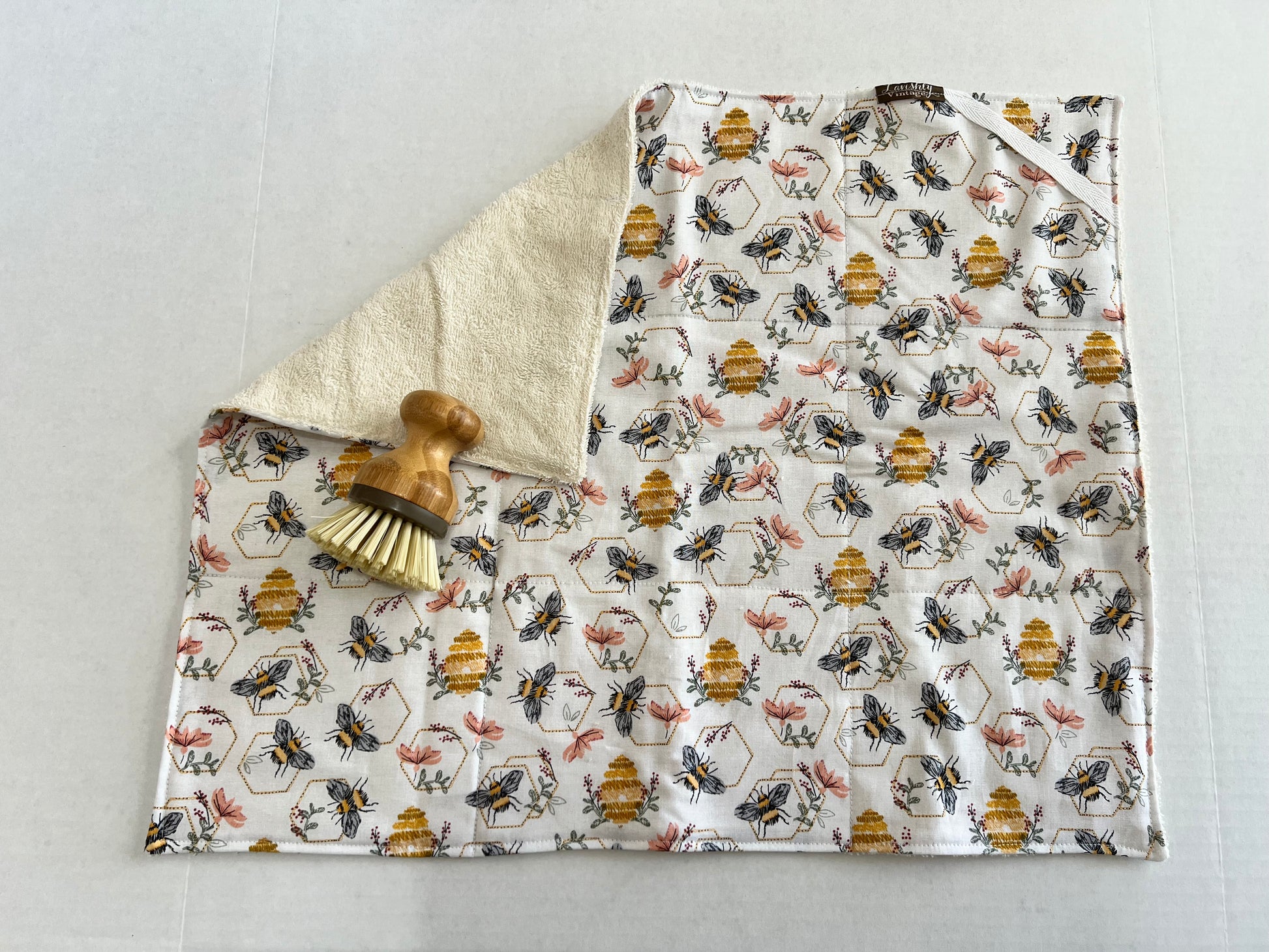 100% cotton Dish Drying Mat featuring absorbent cotton and terry cloth.