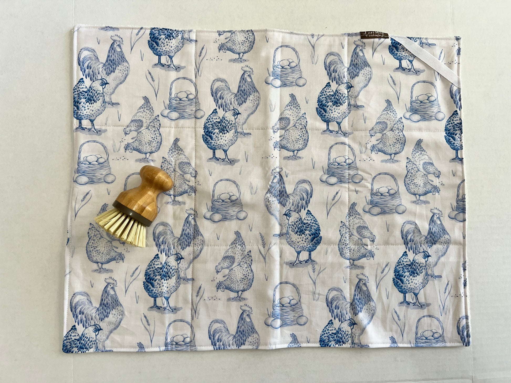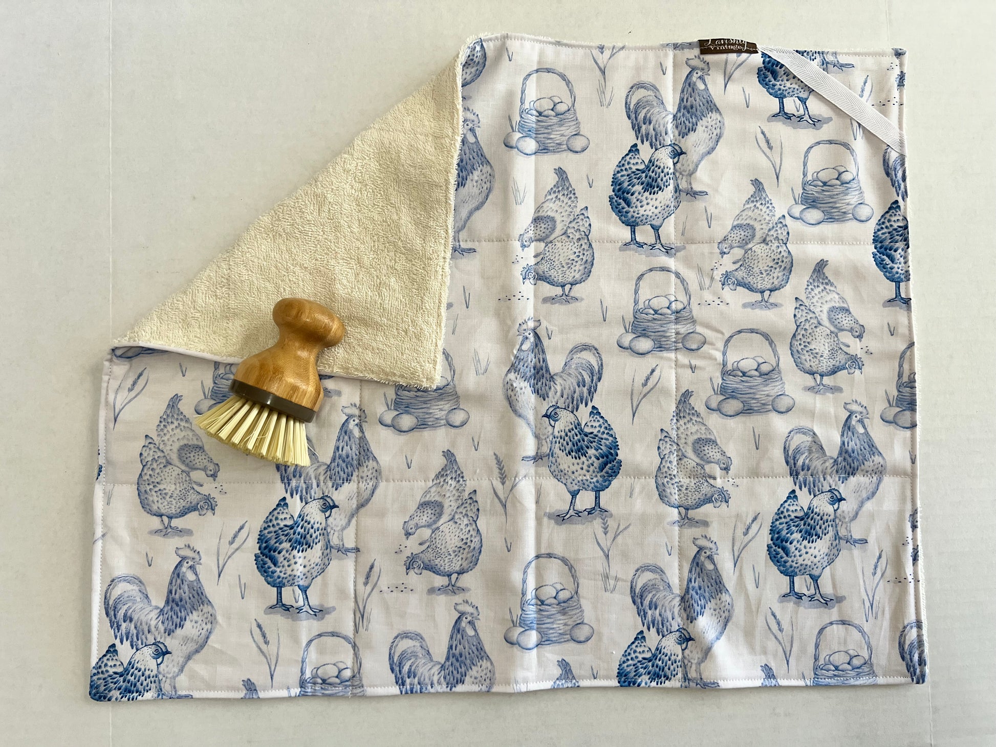 100% cotton Dish Drying Mat featuring absorbent cotton and terry cloth.