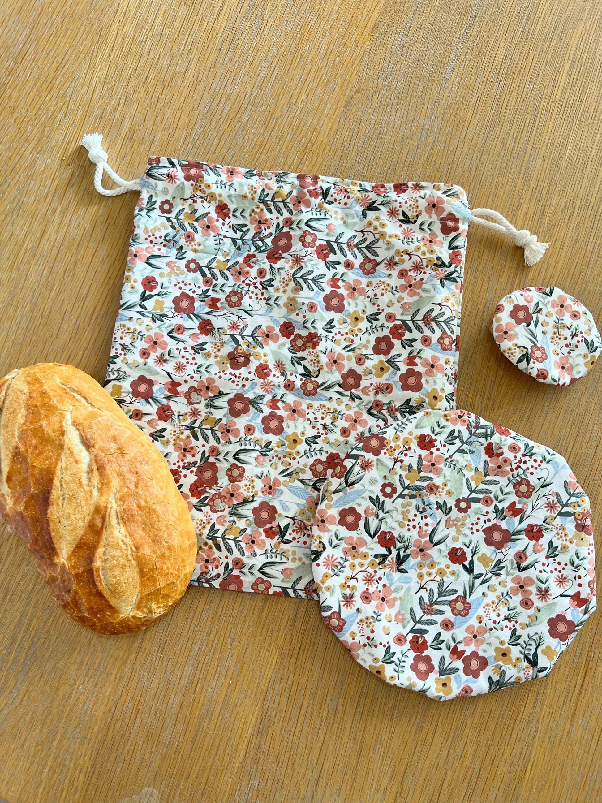 Medium bowl cover fits approximately 7" bowl. Bowl cover also has cotton fabric on one side and lined with PUL fabric to replace plastic wrap. Perfect for letting your bread rise.