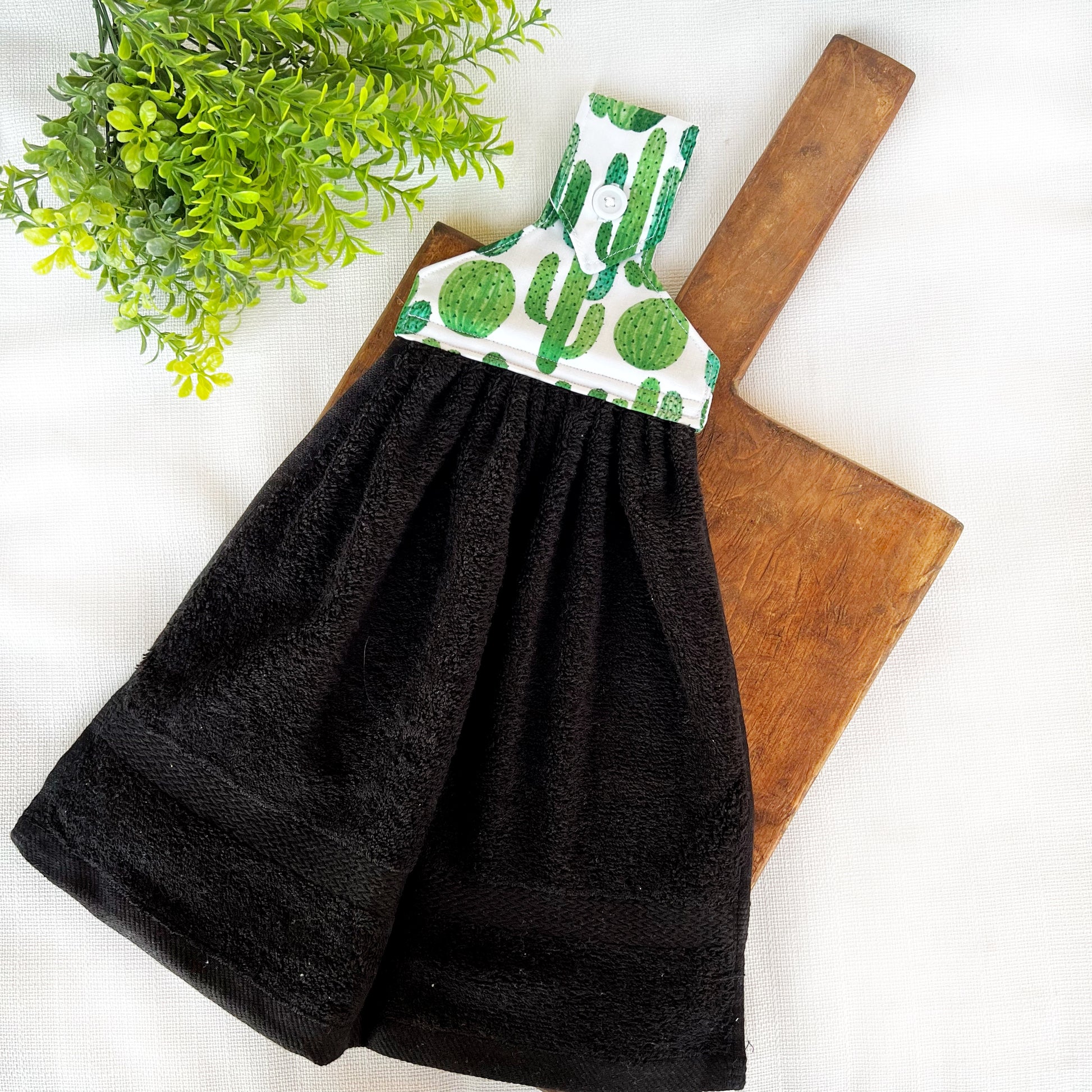 Handmade kitchen hand towel that stays secure with a button and hangs perfectly on an oven handle, dishwasher handle, or towel bar. This towel adds a lovely functional decorative touch to your kitchen. It also makes the perfect housewarming, bridal, or wedding gift. This hanging towel ensures that you always know where your towel is.