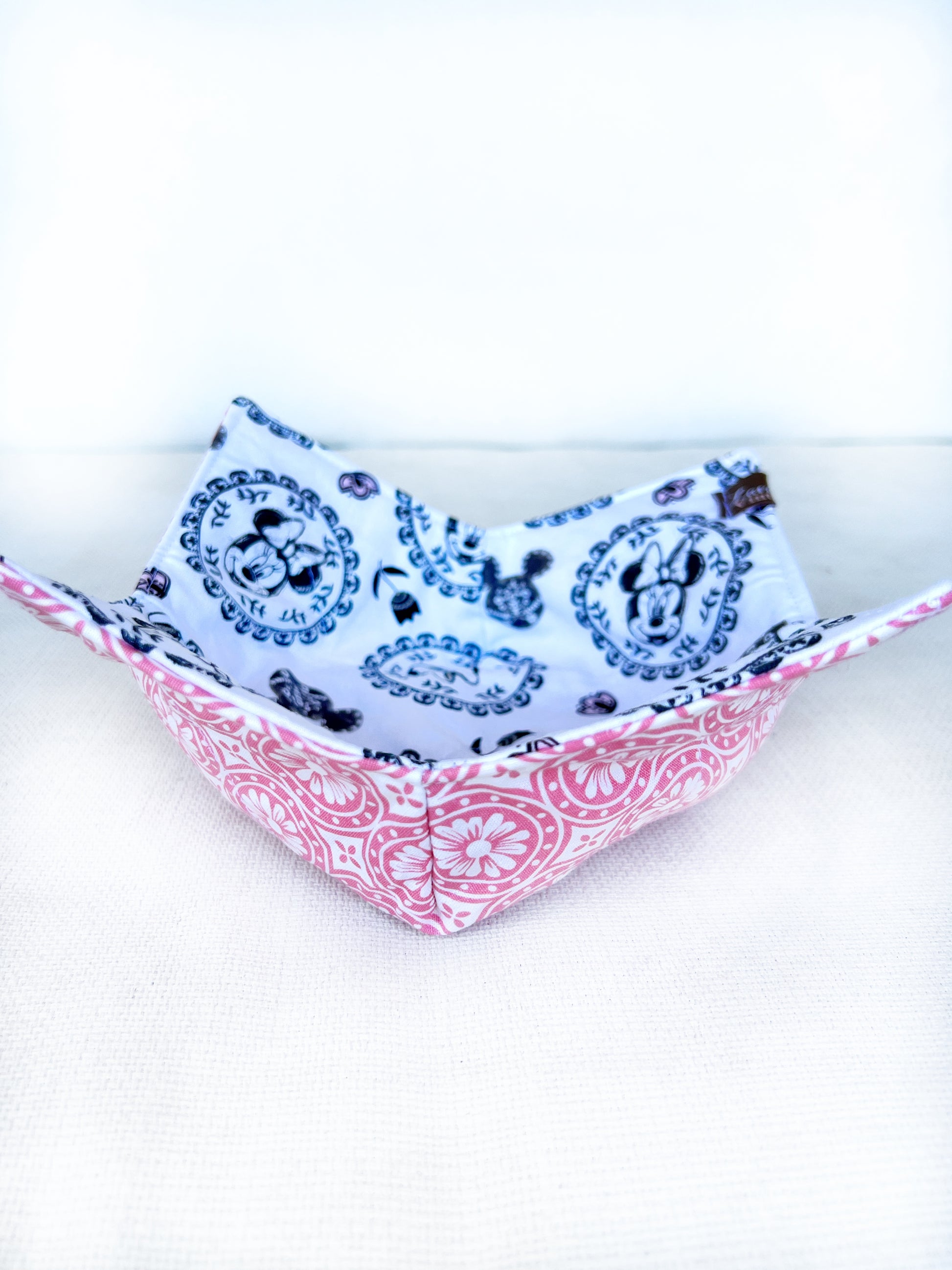 Save your hands from the heat or cold with our NEWEST microwave safe bowl cozy. This is the perfect partner for heating up your bowl of soup or dress up last night's leftovers or your favorite cold treat. Beautiful contrasting fabrics are sure to make those leftovers or ice cream taste better