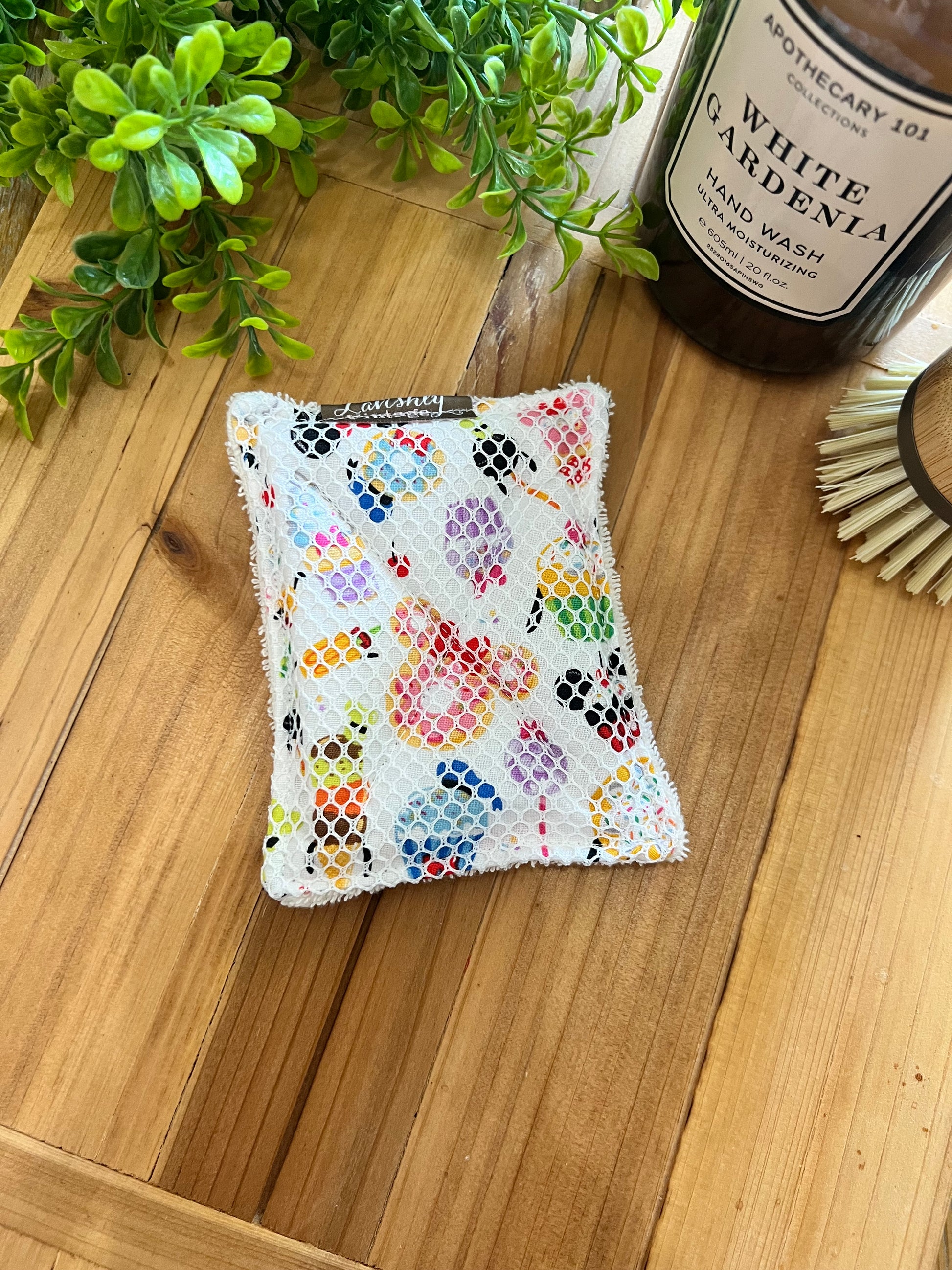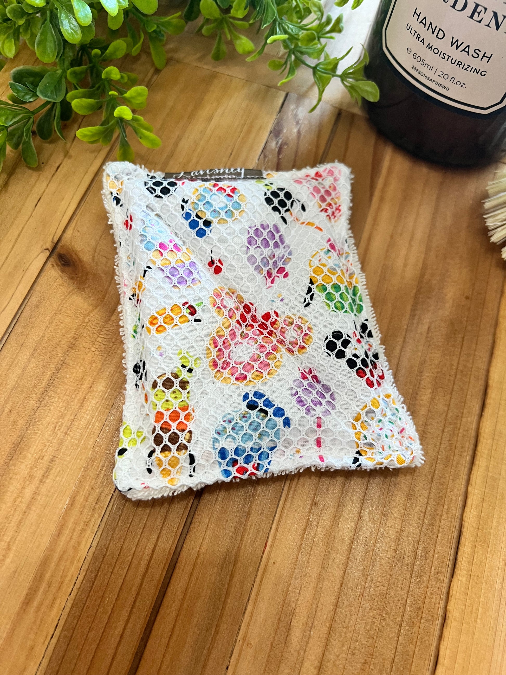 Handmade, washable, durable sponge that can be used and washed over and over! UnSponges are handmade with high quality materials in cute patterns. Made from 100% terry cloth for high absorbency and soft washing surface, thin layer of eco recycled foam to absorb and make suds, cotton print for absorbency and color, and mesh topper for gentle scrub.