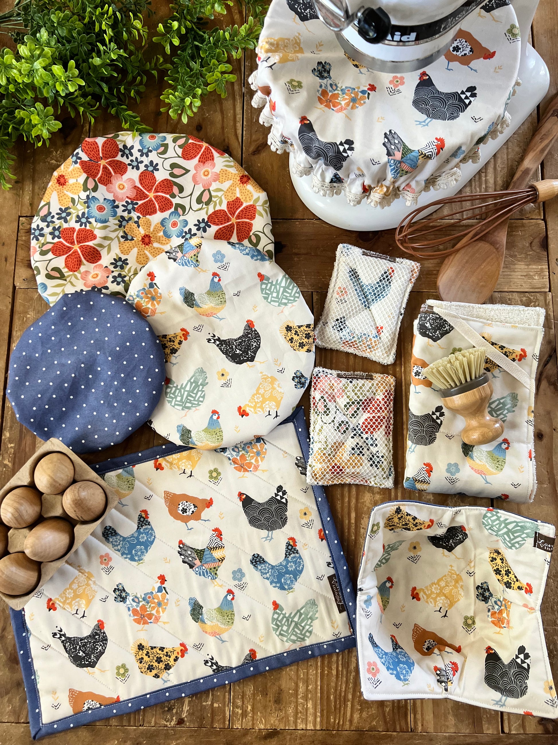 Keep your dishes covered with these simple cotton jar covers and say goodbye to single use plastic. Each cover uses elastic to fit a range of jar diameters. Jar cover is pictured with 64oz half gallon wide mouth jar.