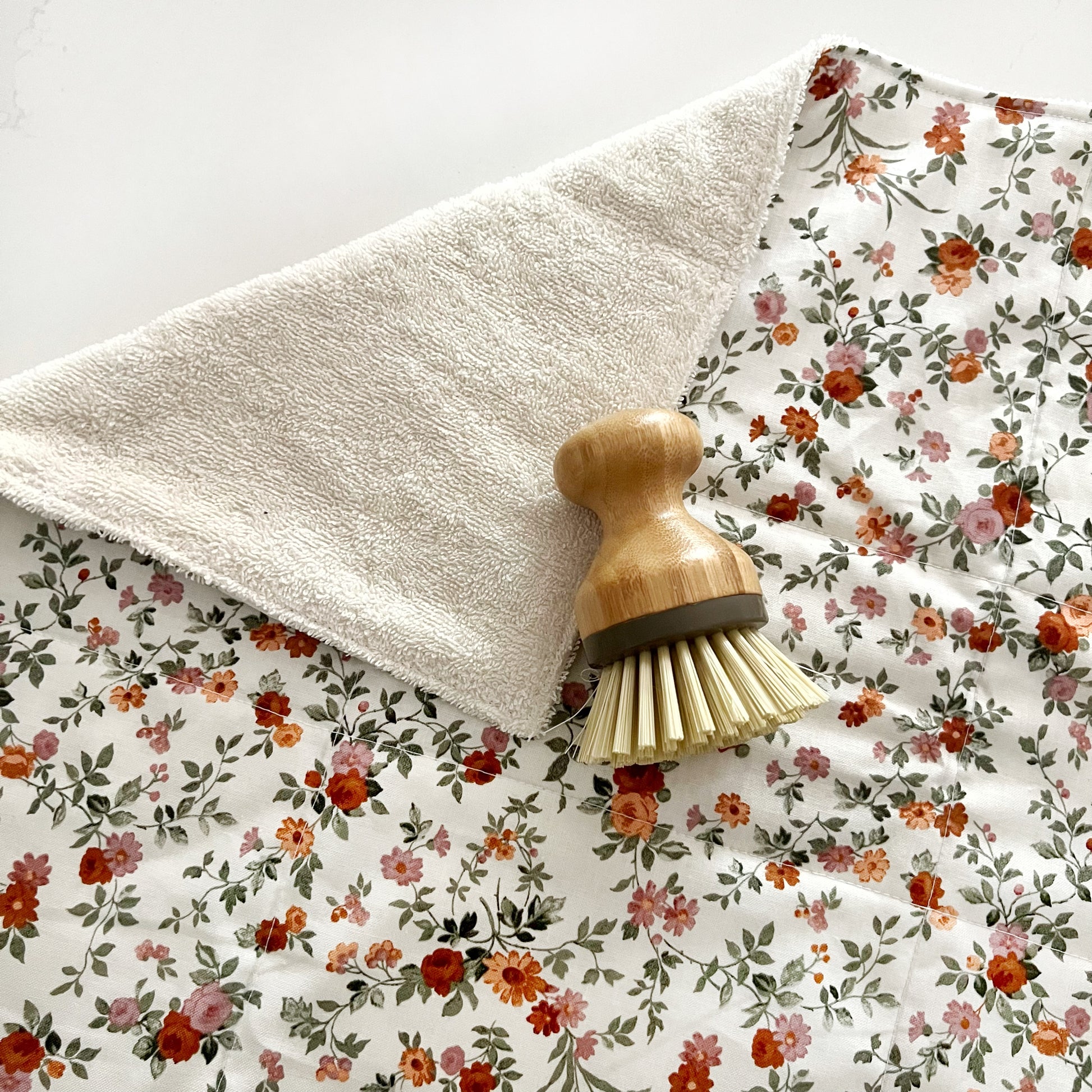 100% cotton Dish Drying Mat featuring absorbent cotton and terry cloth.