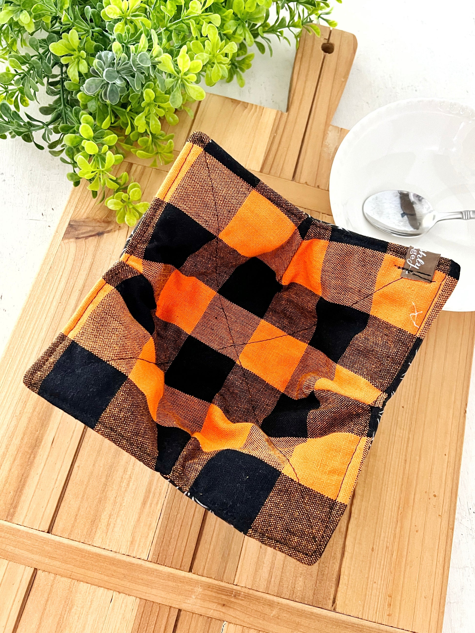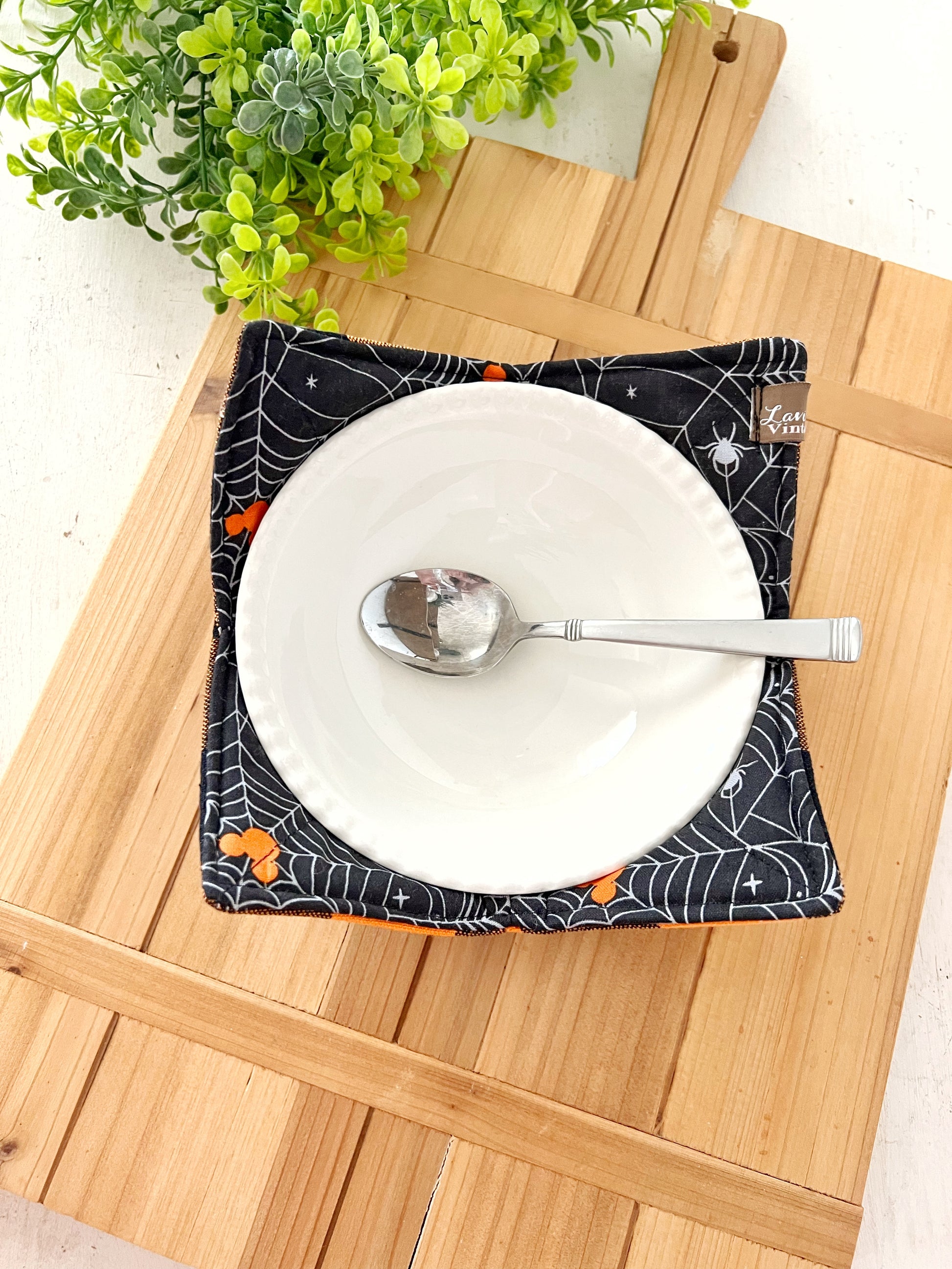 Save your hands from the heat or cold with our NEWEST microwave safe bowl cozy. This is the perfect partner for heating up your bowl of soup or dress up last night's leftovers or your favorite cold treat. Beautiful contrasting fabrics are sure to make those leftovers or ice cream taste better