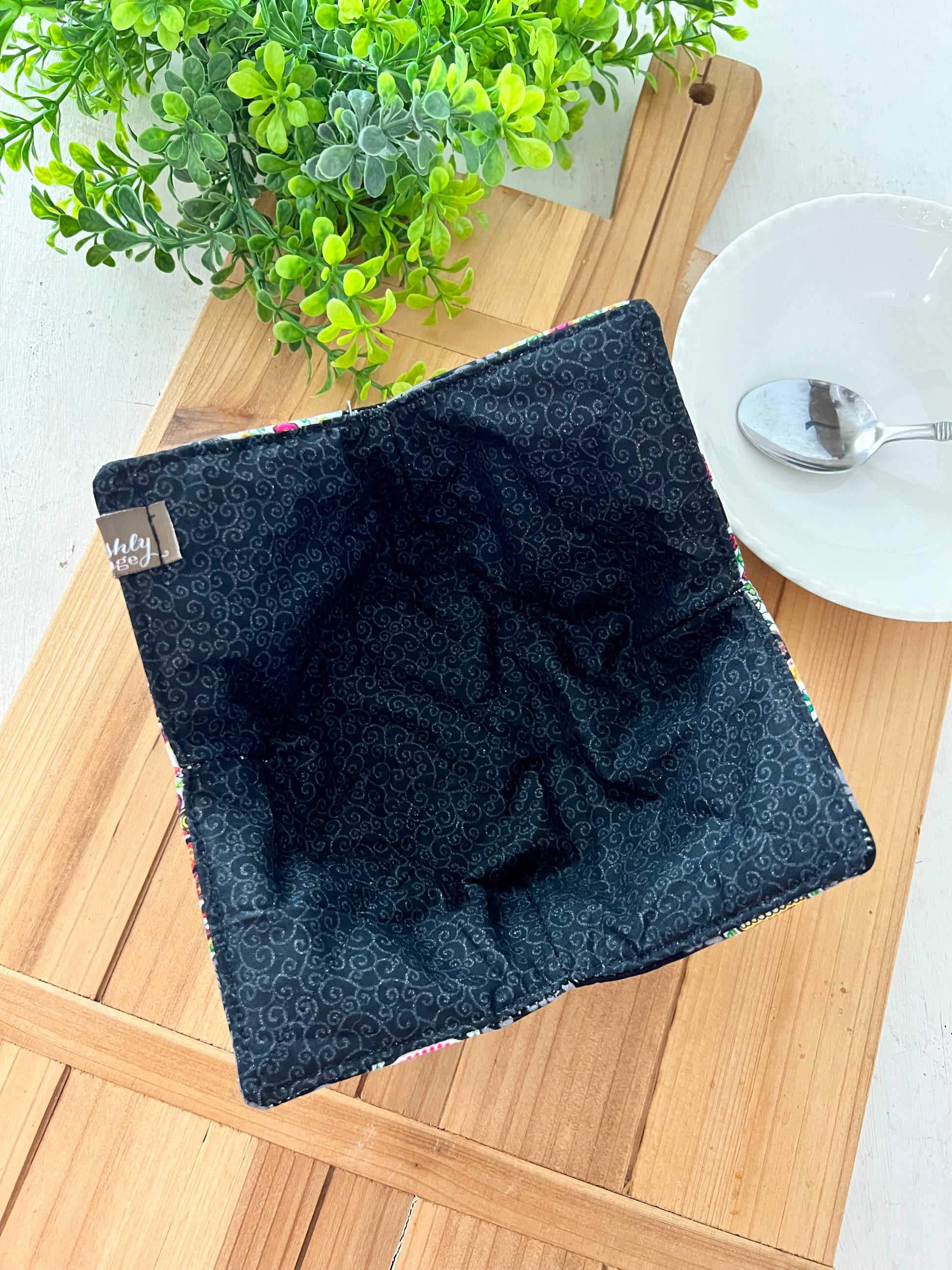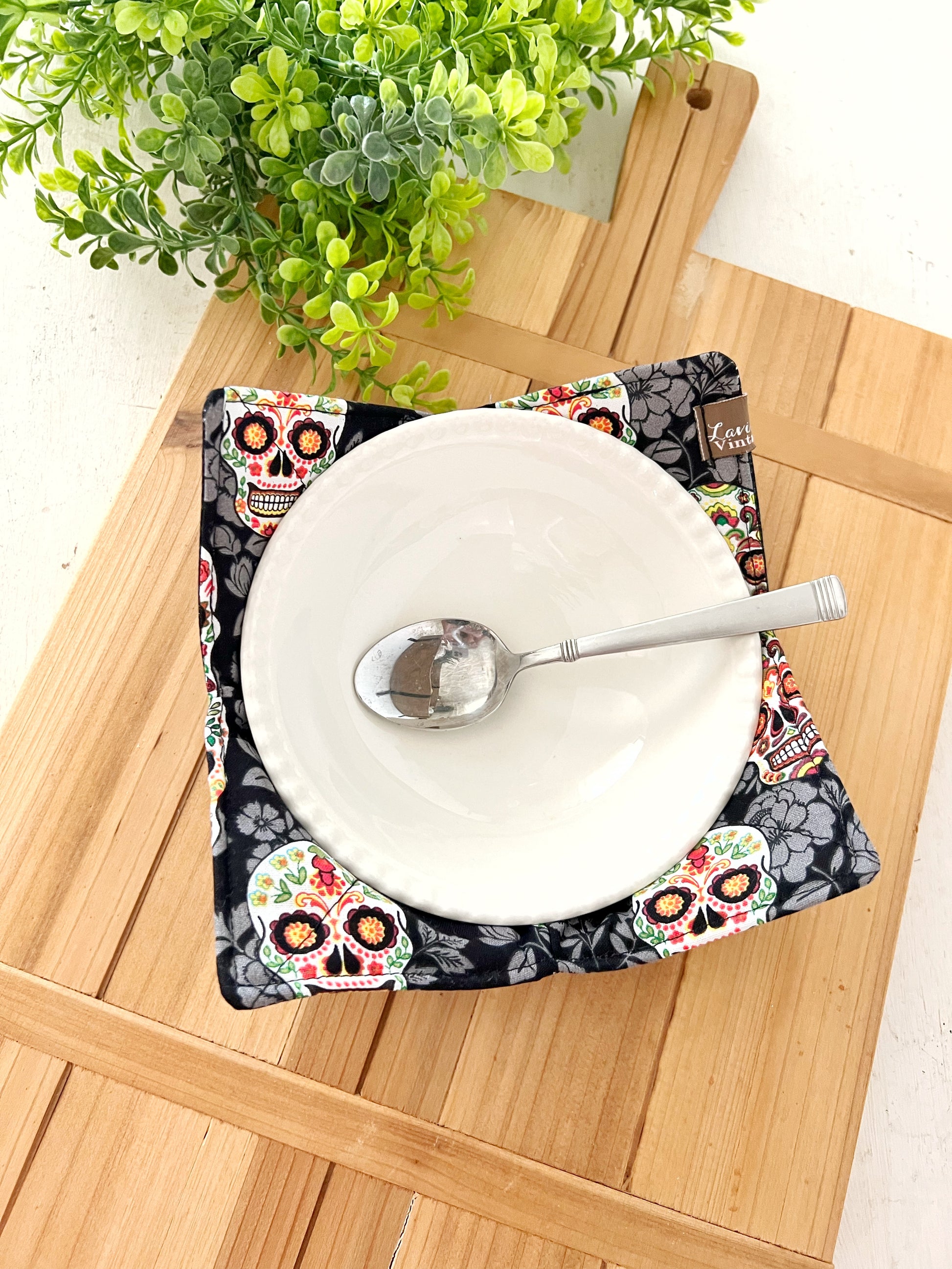 Save your hands from the heat or cold with our NEWEST microwave safe bowl cozy. This is the perfect partner for heating up your bowl of soup or dress up last night's leftovers or your favorite cold treat. Beautiful contrasting fabrics are sure to make those leftovers or ice cream taste better