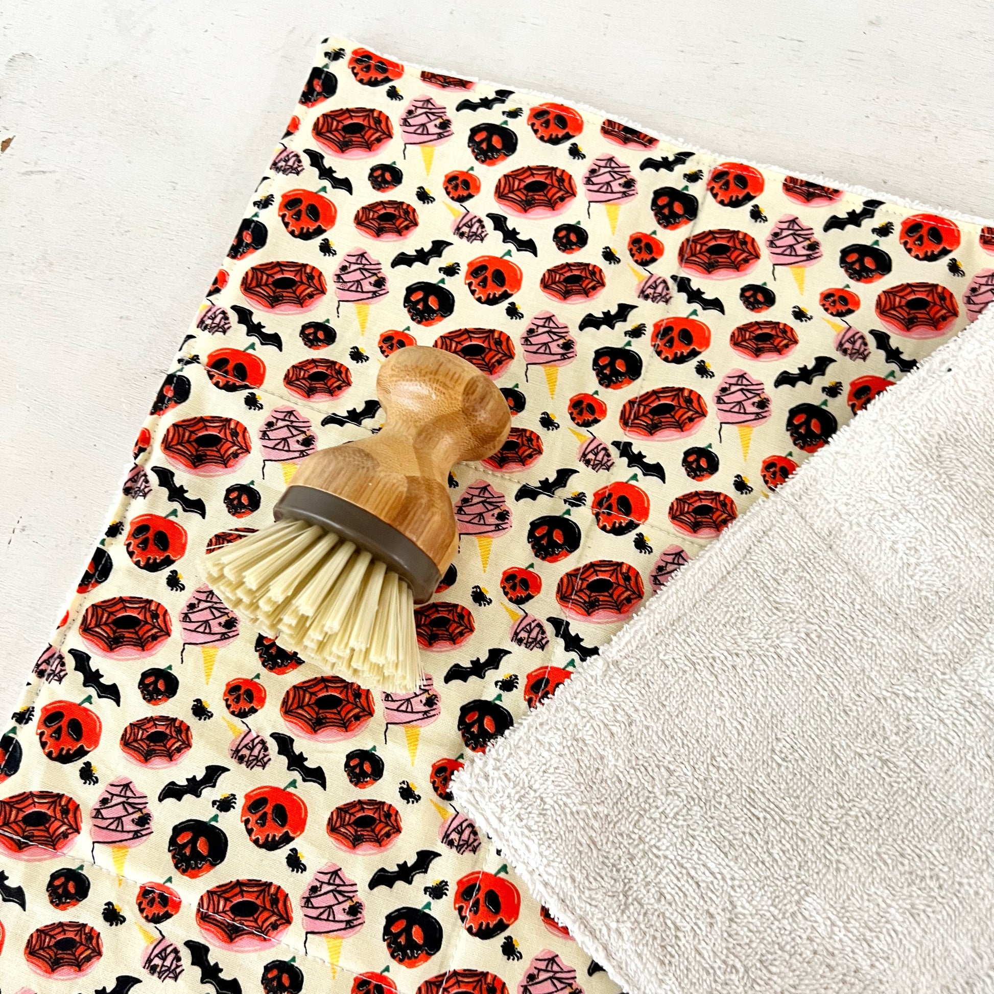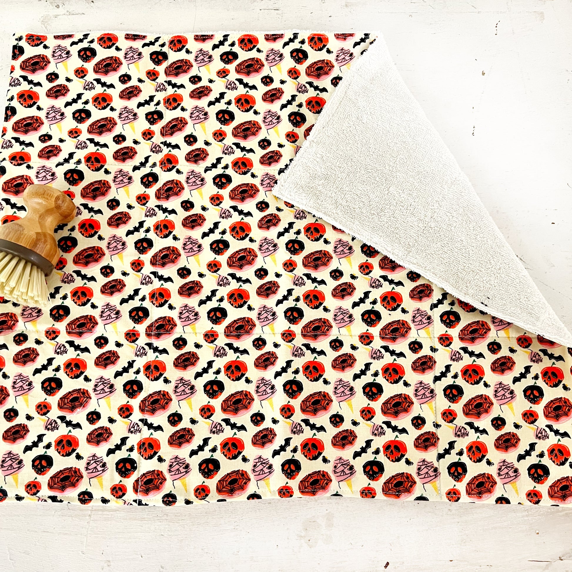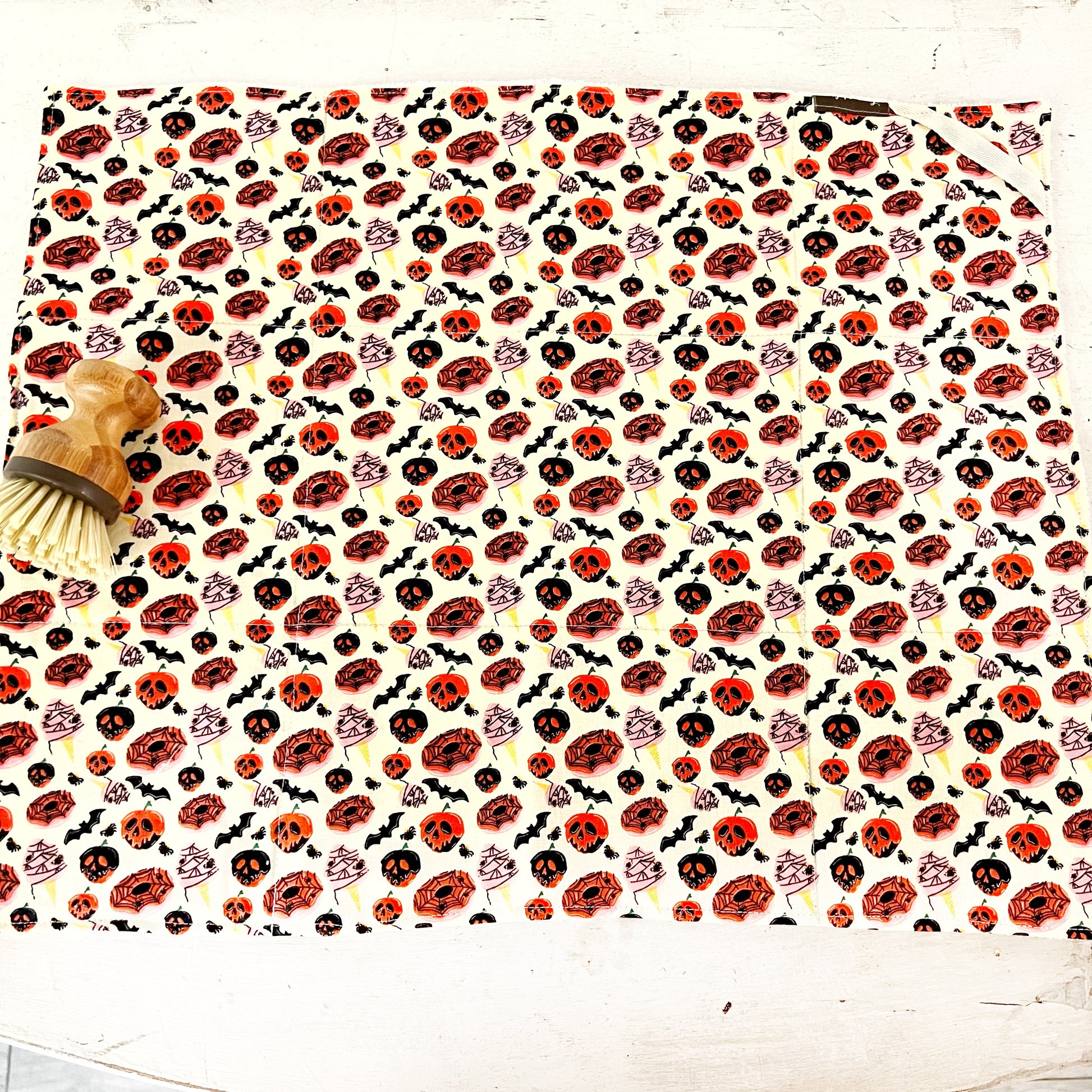 100% cotton Dish Drying Mat featuring absorbent cotton and terry cloth.