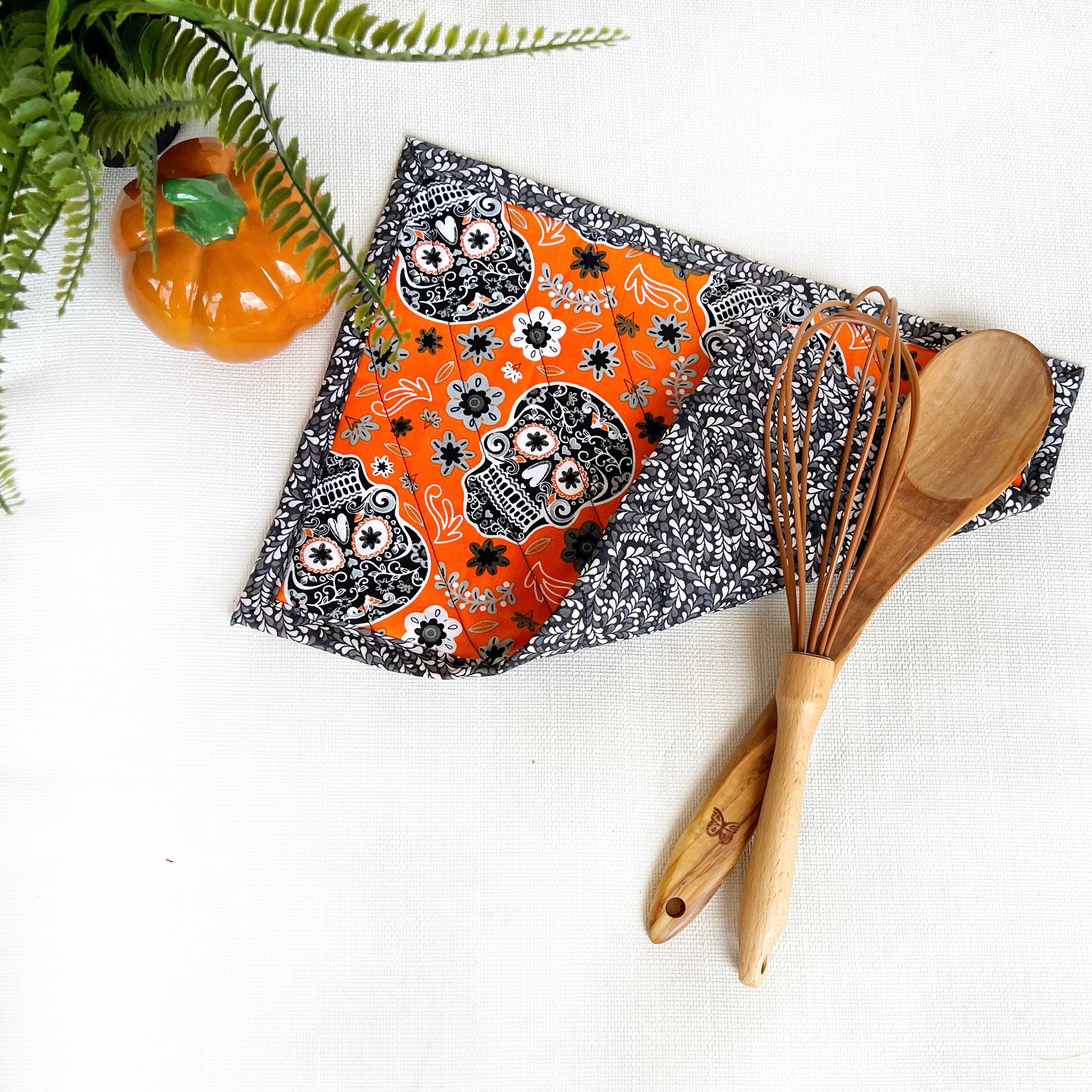 Each hot pad measures 10"x14" and are made with two coordinating cotton fabrics, and TWO layers of cotton batting. It is machine washable and reversible! See other listing for various designs available.