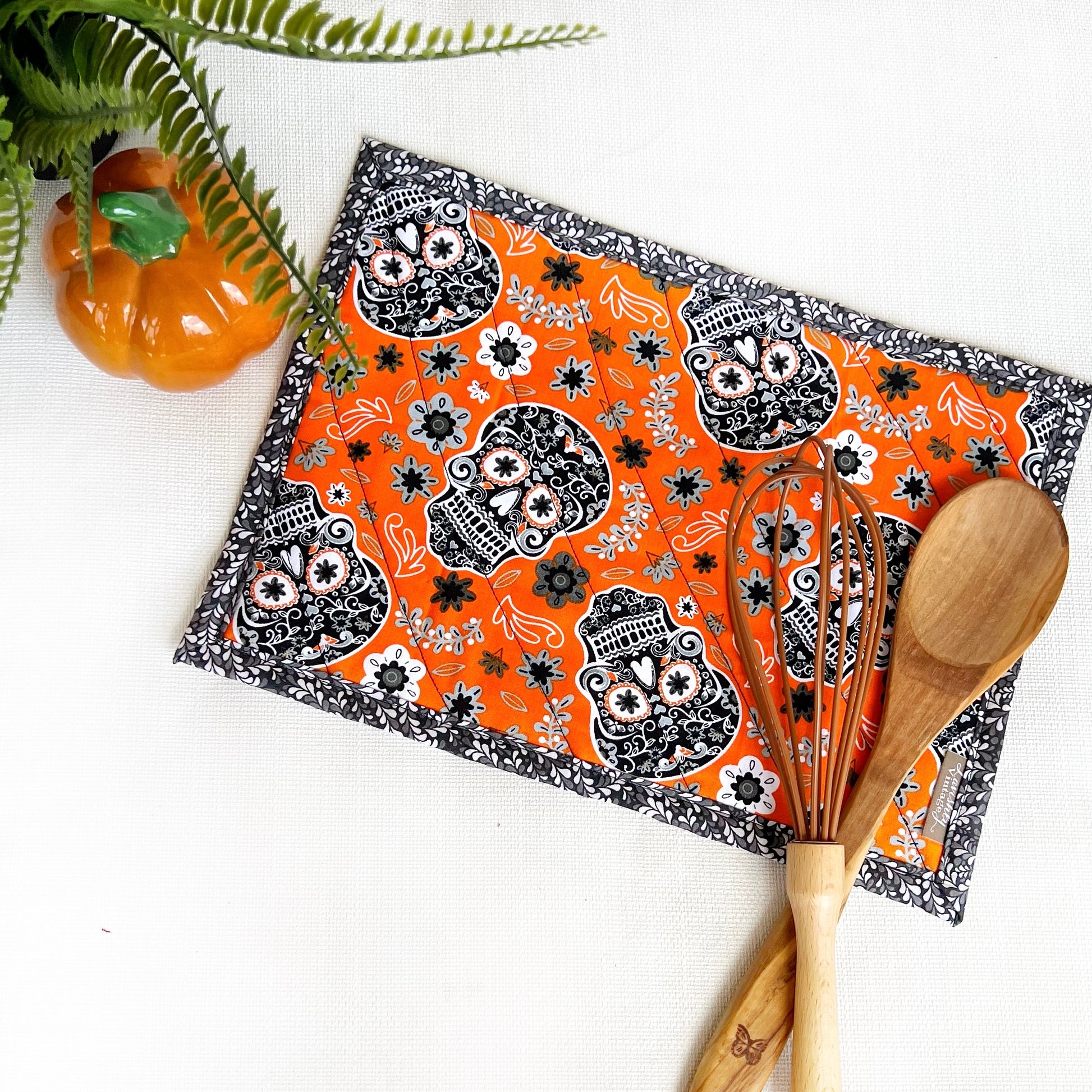 Perfect for your holiday table! This 10"x14" hot pad that fits perfectly under your casserole dish or cookie sheet! Will eliminate the need for two small hot pads!