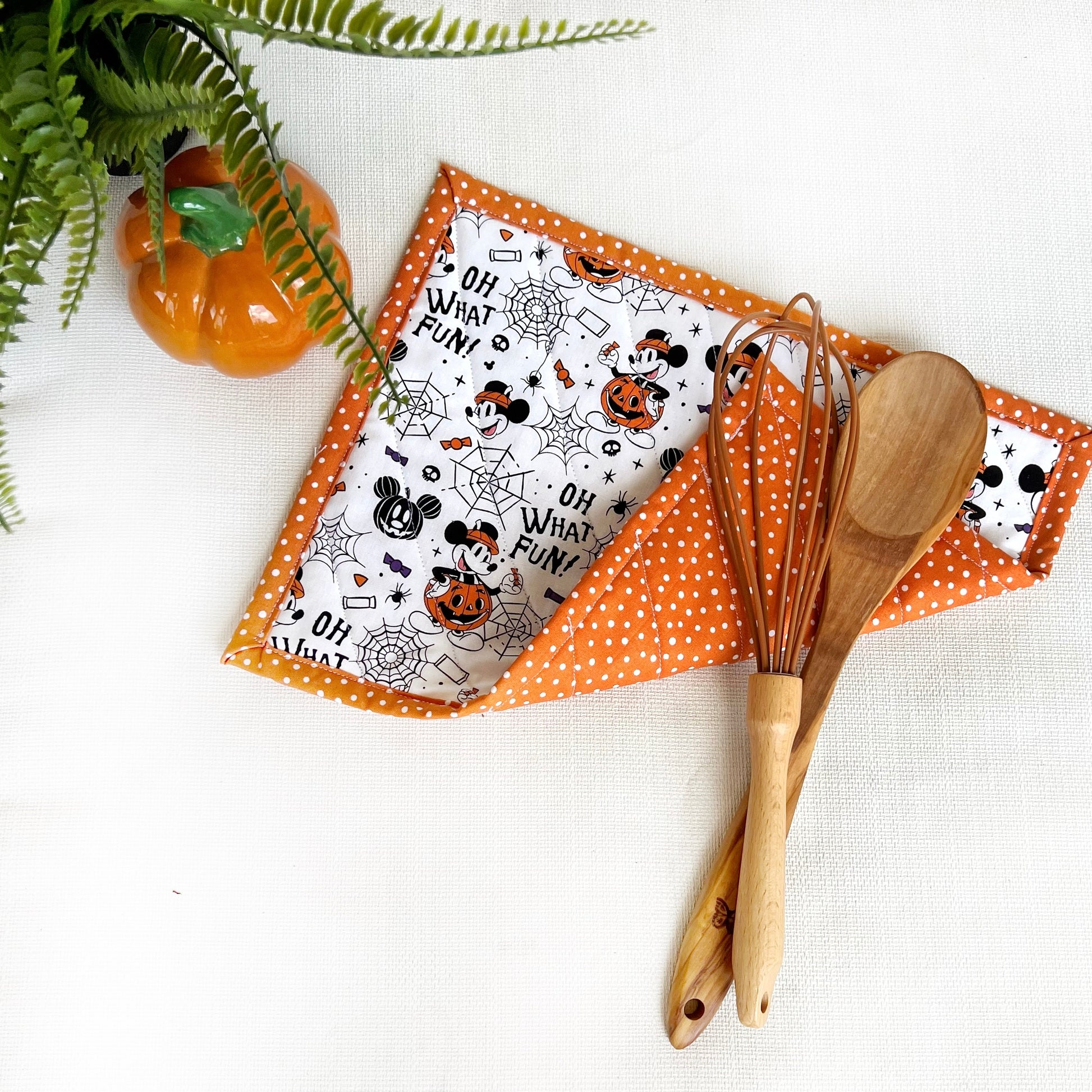 Each hot pad measures 10"x14" and are made with two coordinating cotton fabrics, and TWO layers of cotton batting. It is machine washable and reversible! See other listing for various designs available.