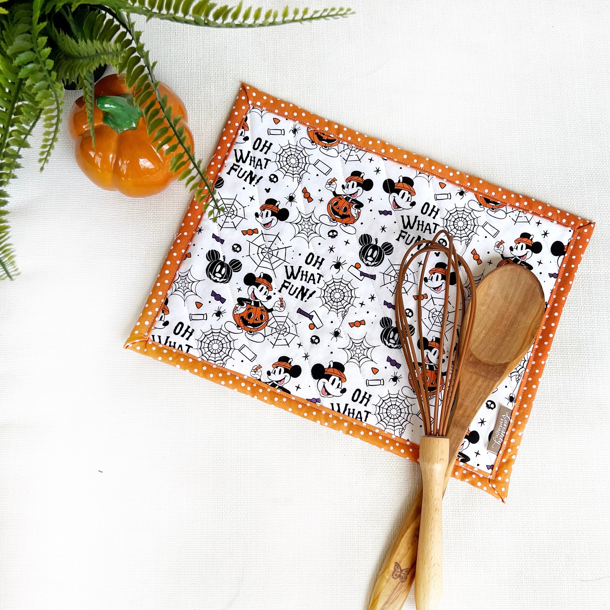 Perfect for your holiday table! This 10"x14" hot pad that fits perfectly under your casserole dish or cookie sheet! Will eliminate the need for two small hot pads!