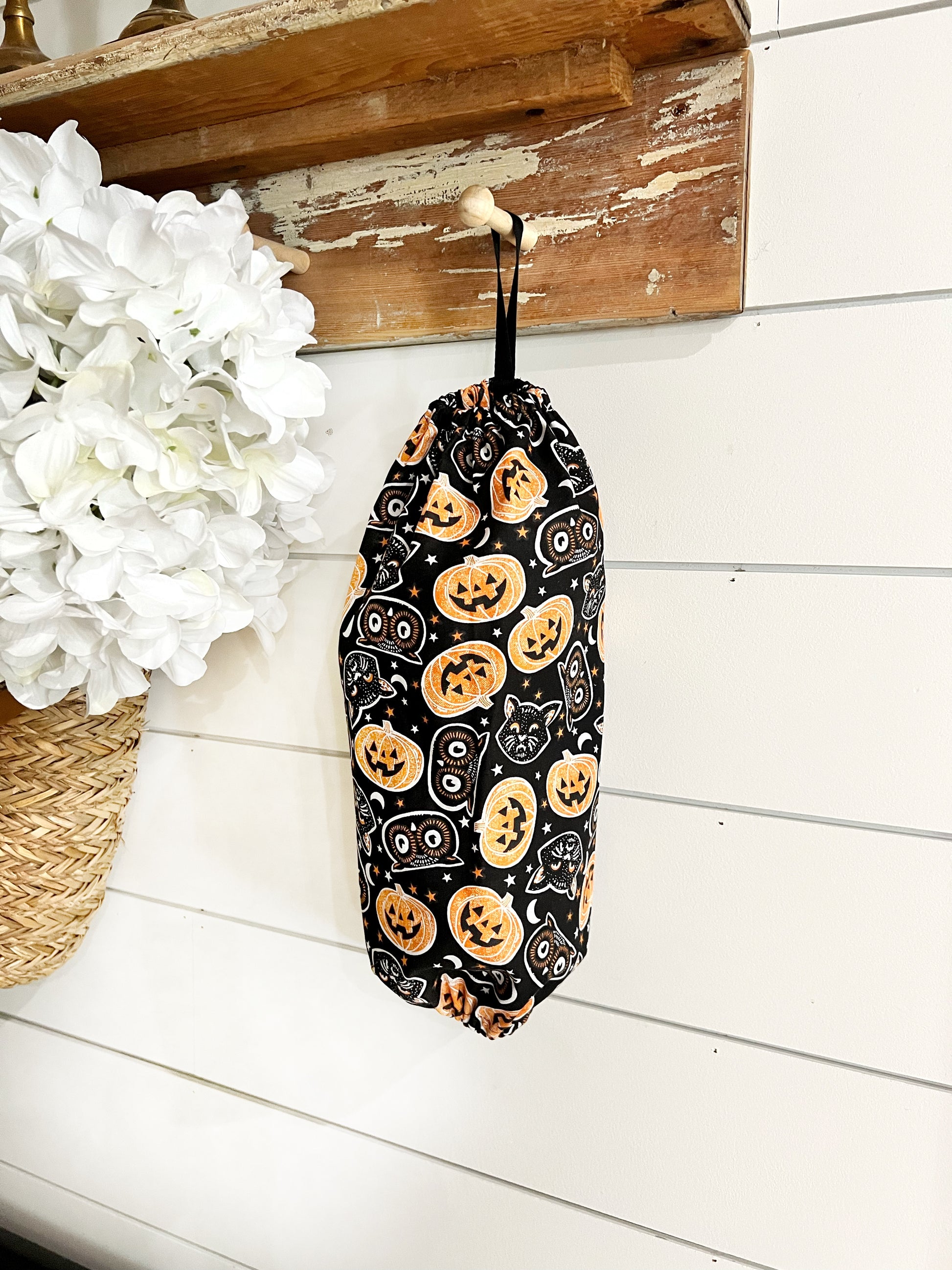 Vintage Cats and Pumpkins Bag Holder