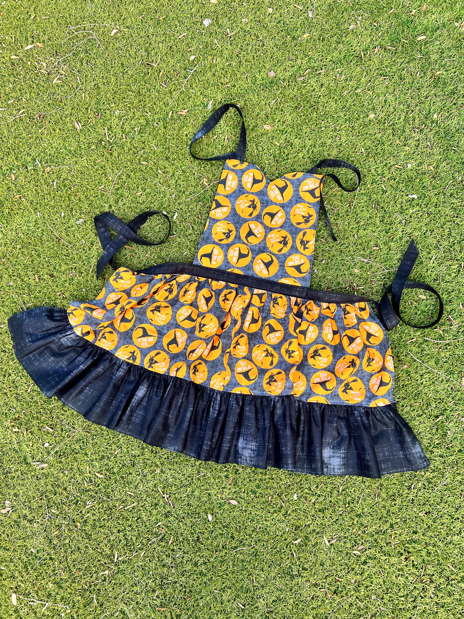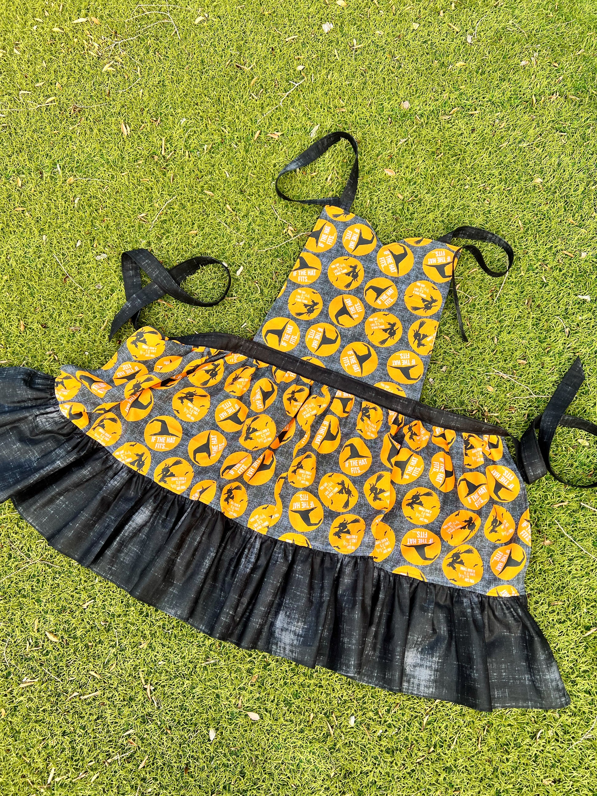 This apron is approximately 31” long and 30” wide with a 70” strap.