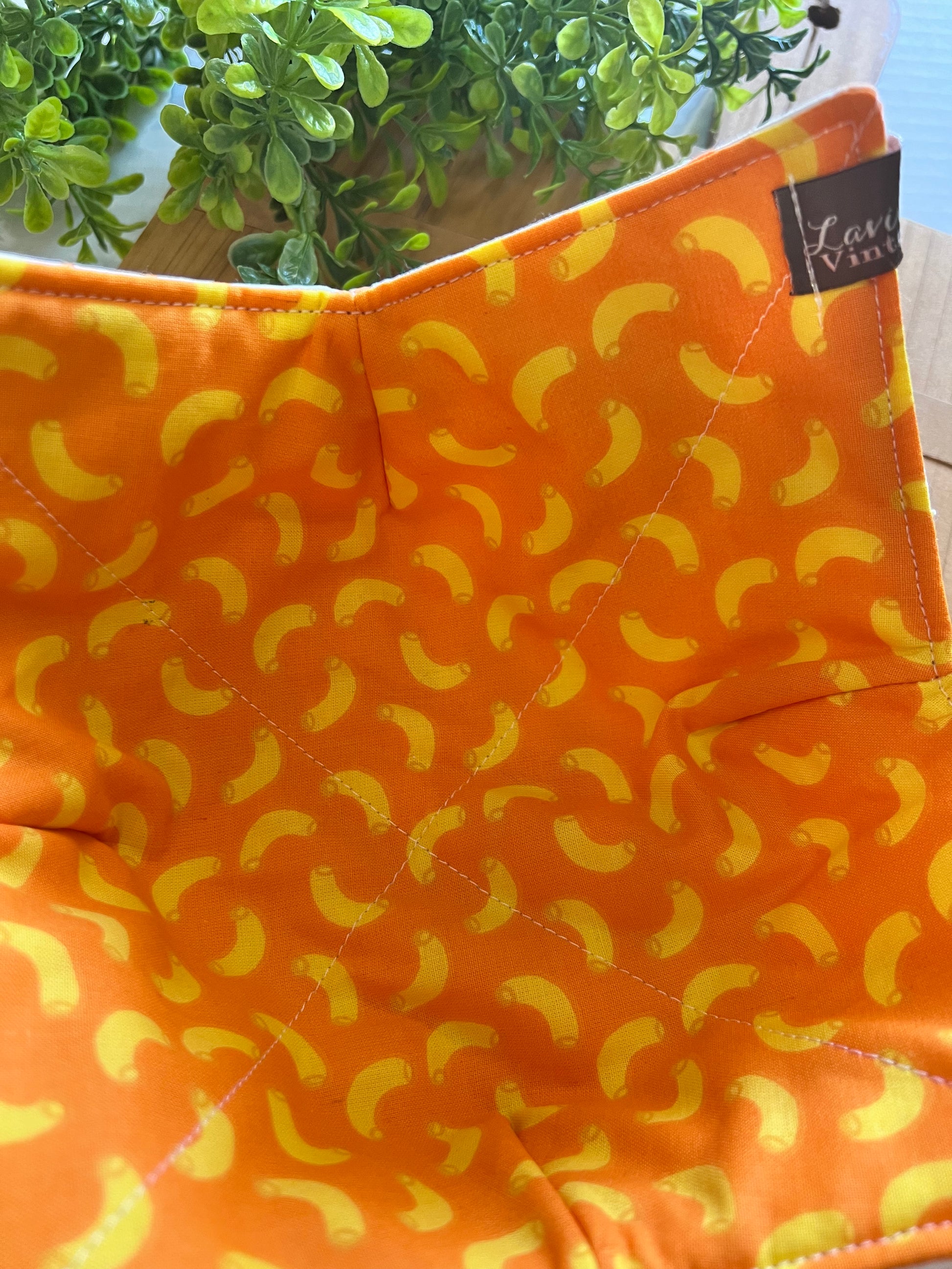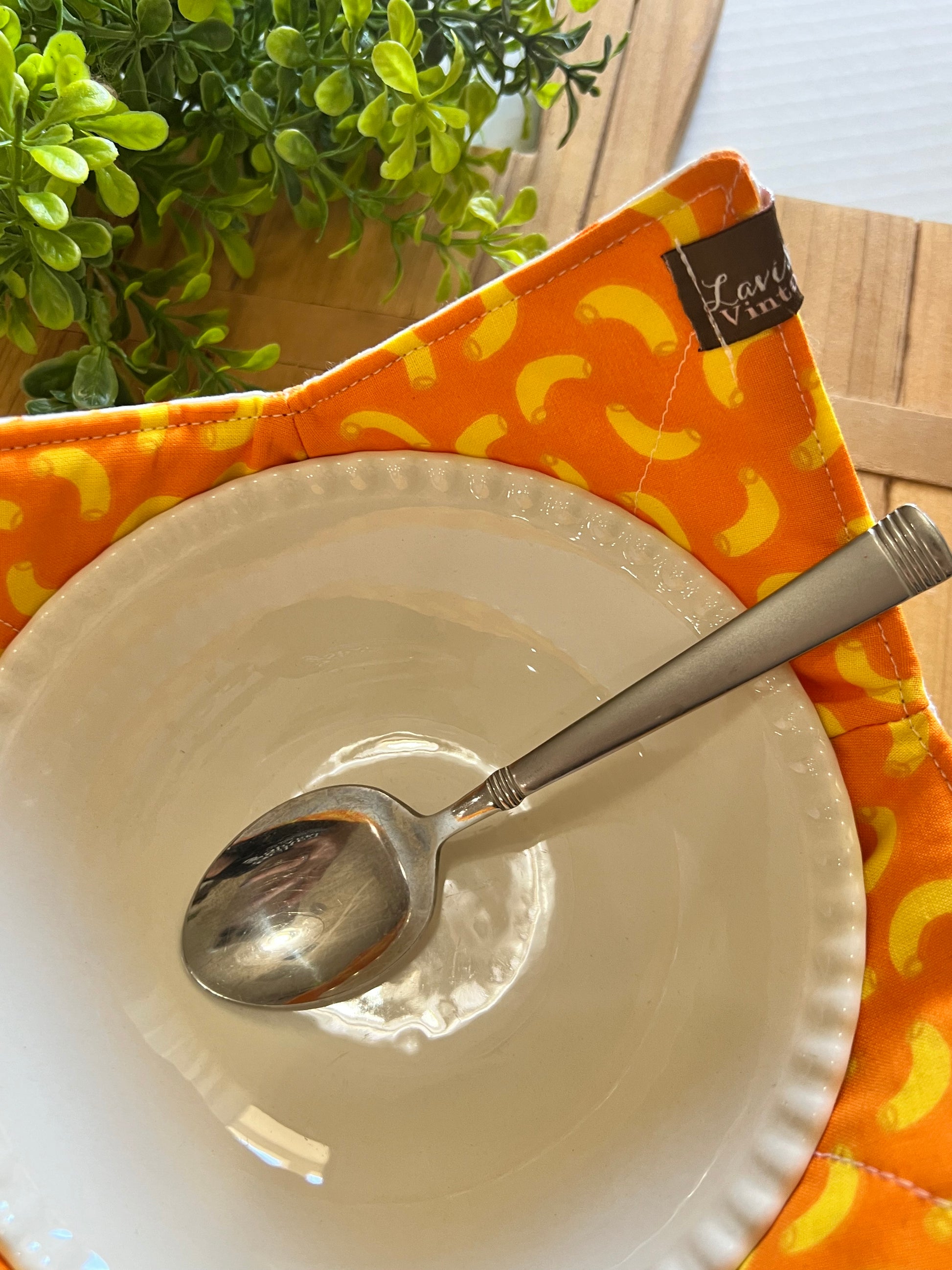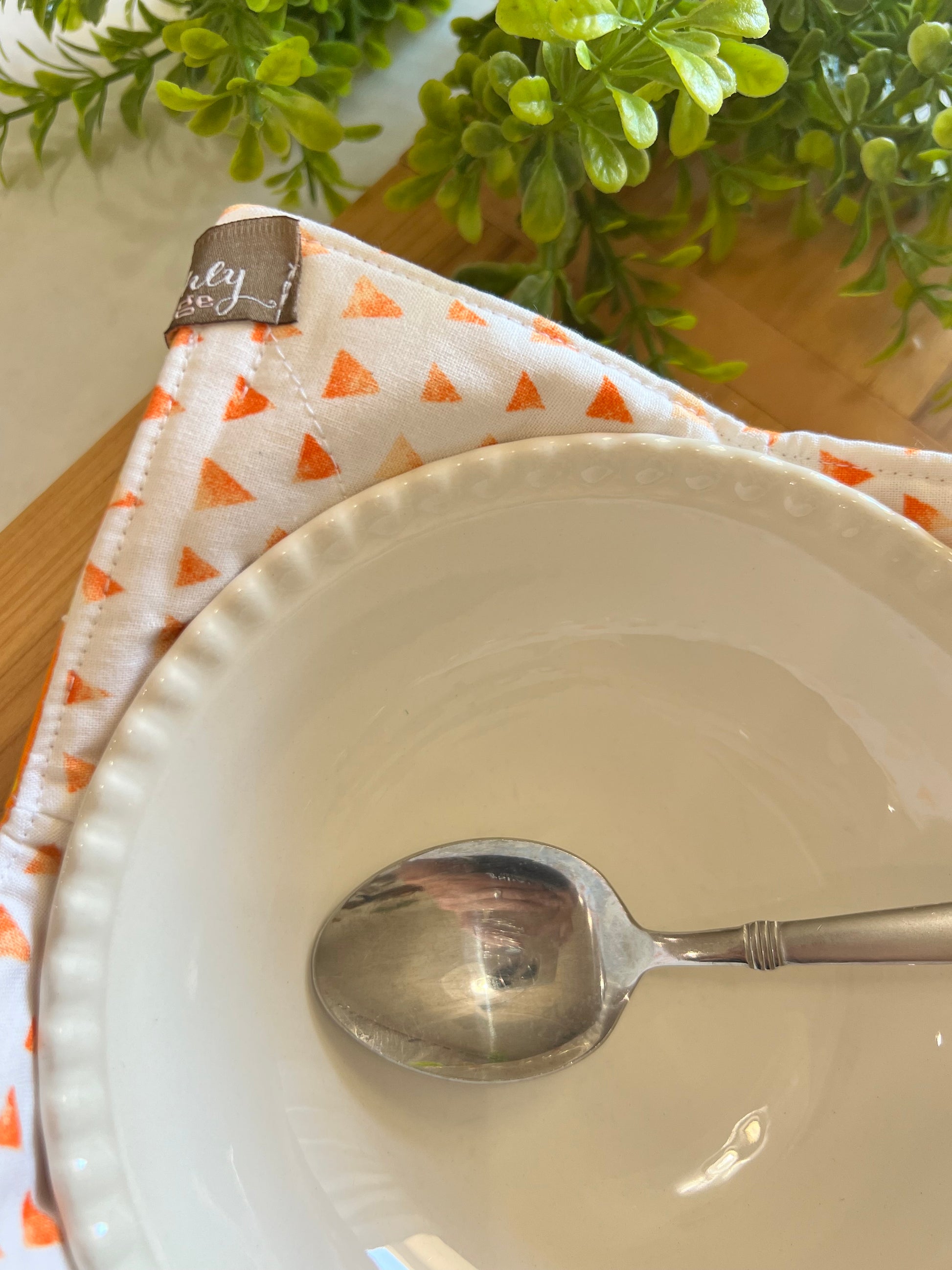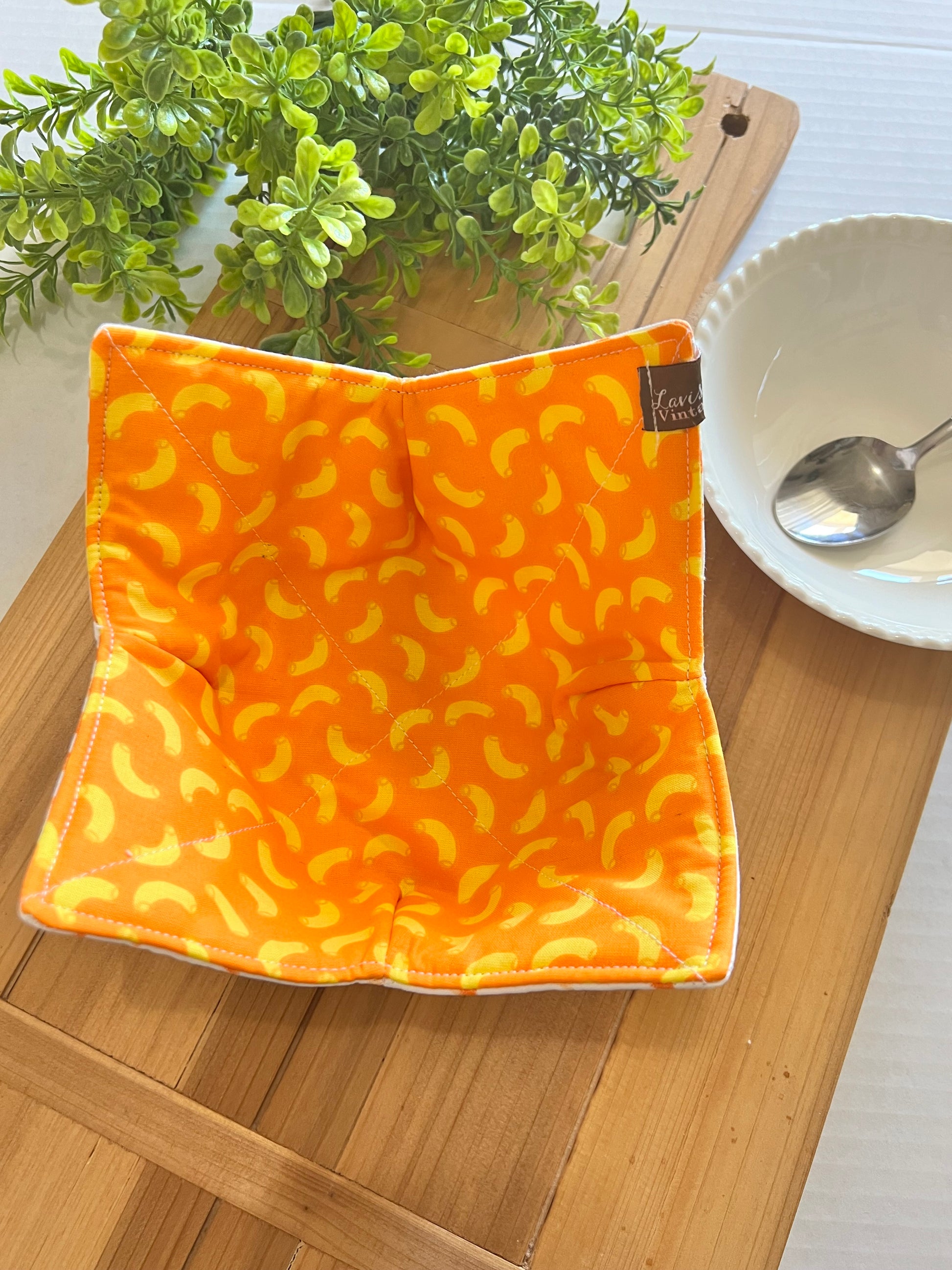 Save your hands from the heat or cold with our NEWEST microwave safe bowl cozy. This is the perfect partner for heating up your bowl of soup or dress up last night's leftovers or your favorite cold treat. Beautiful contrasting fabrics are sure to make those leftovers or ice cream taste better
