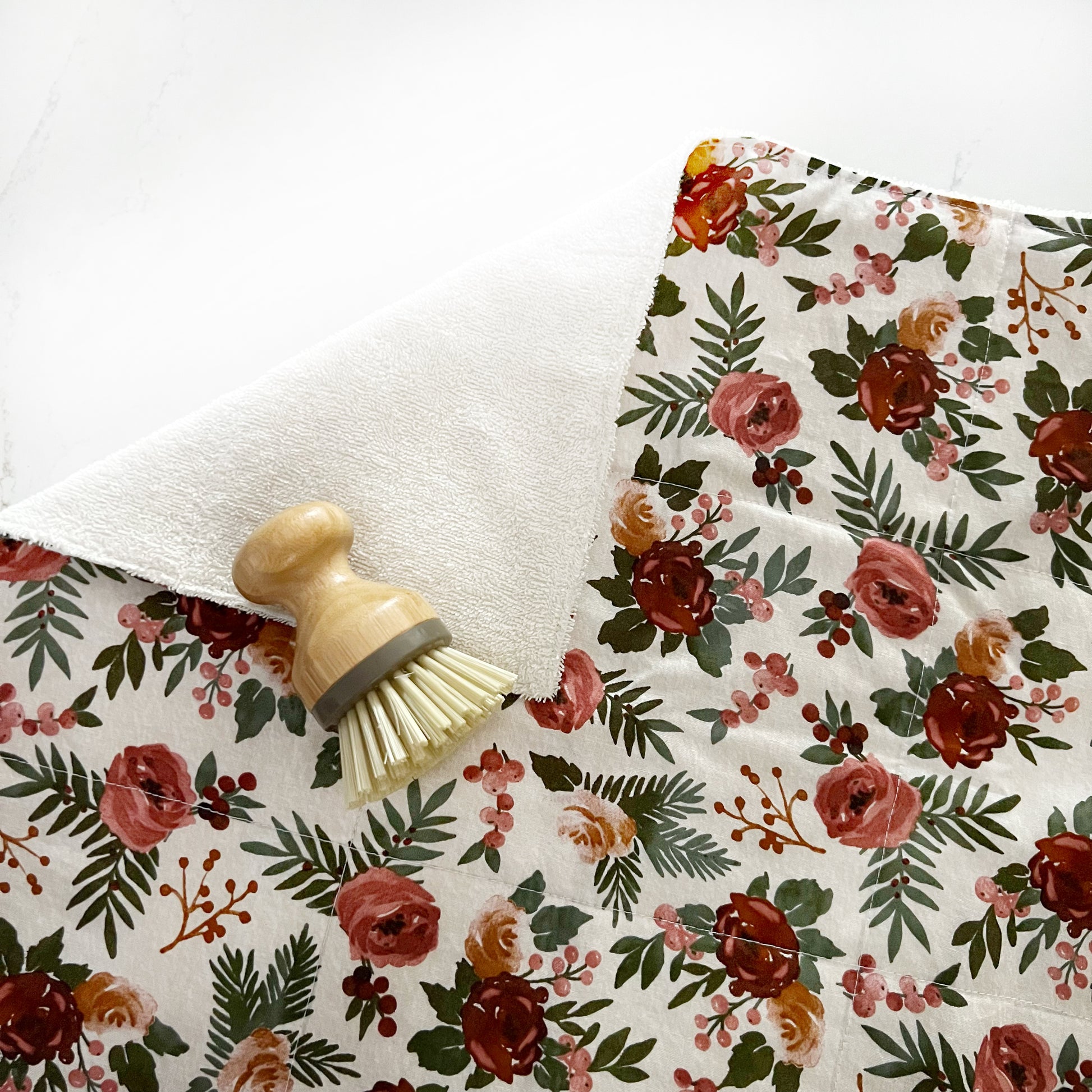 100% cotton Dish Drying Mat featuring absorbent cotton and terry cloth.