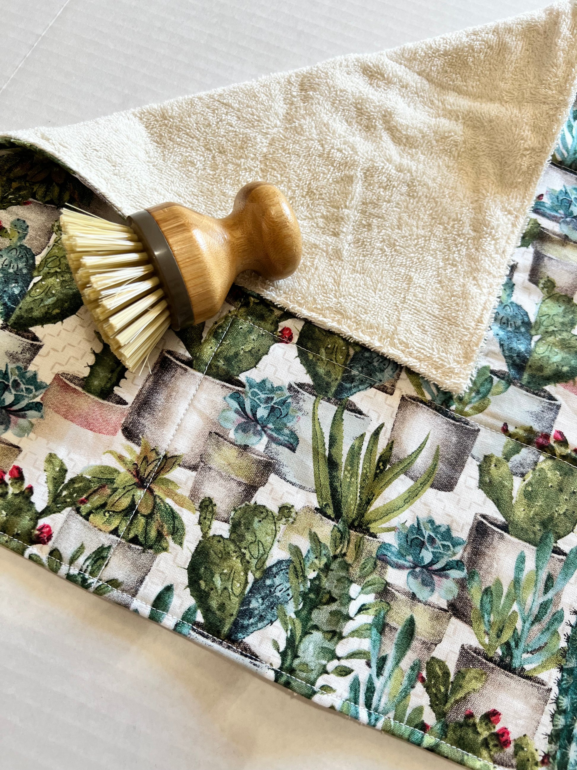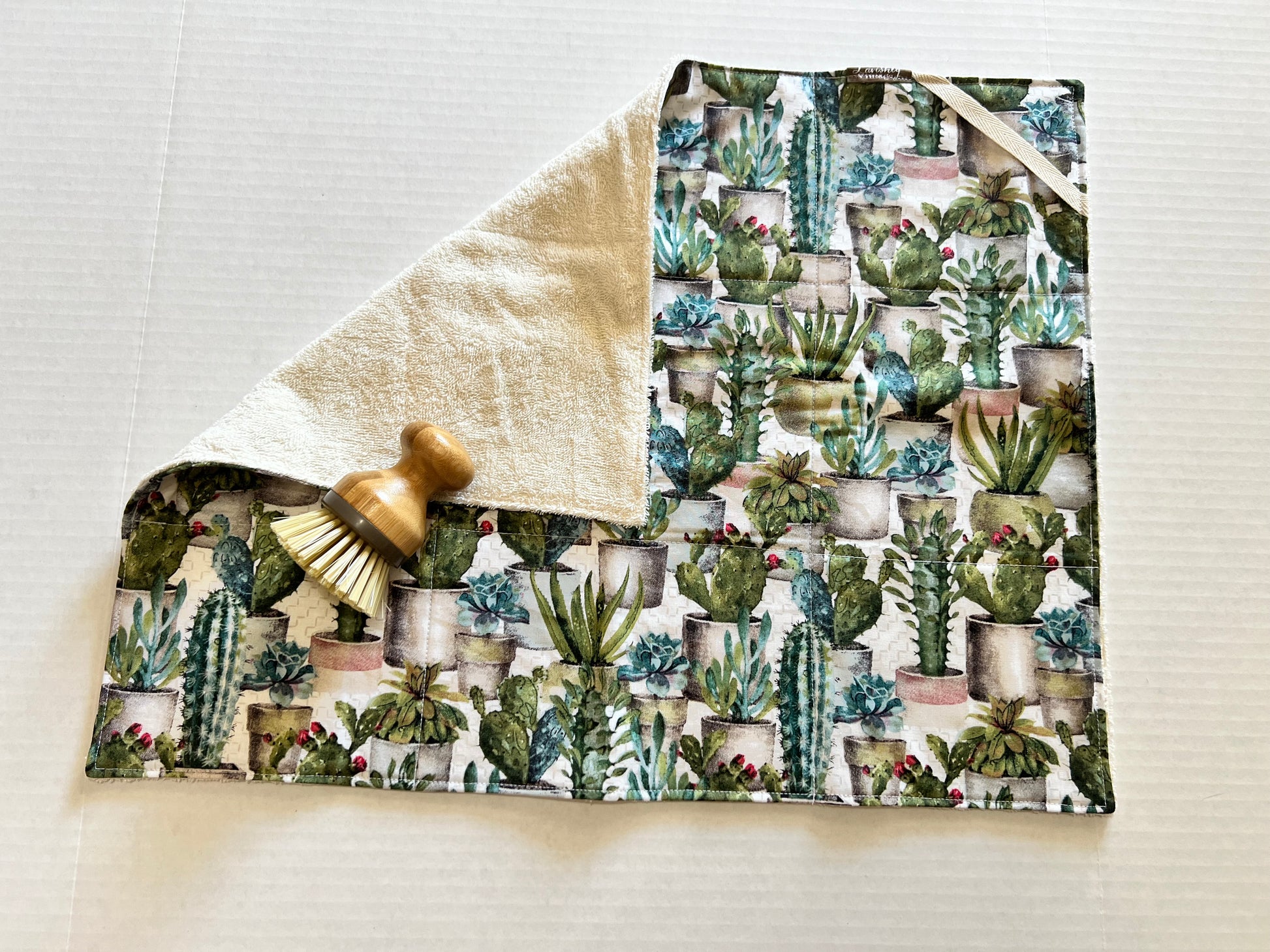 100% cotton Dish Drying Mat featuring absorbent cotton and terry cloth.