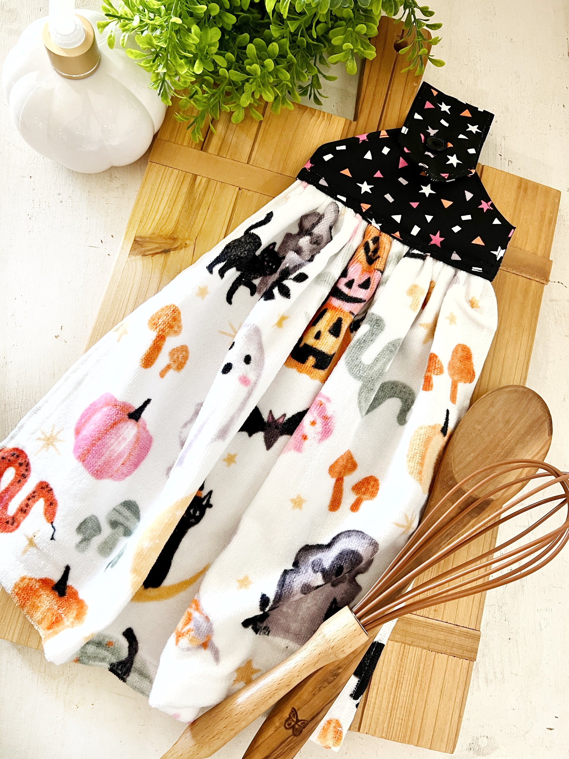 Handmade kitchen hand towel that stays secure with a button and hangs perfectly on an oven handle, dishwasher handle, or towel bar. This towel adds a lovely functional decorative touch to your kitchen. It also makes the perfect housewarming, bridal, or wedding gift. This hanging towel ensures that you always know where your towel is.