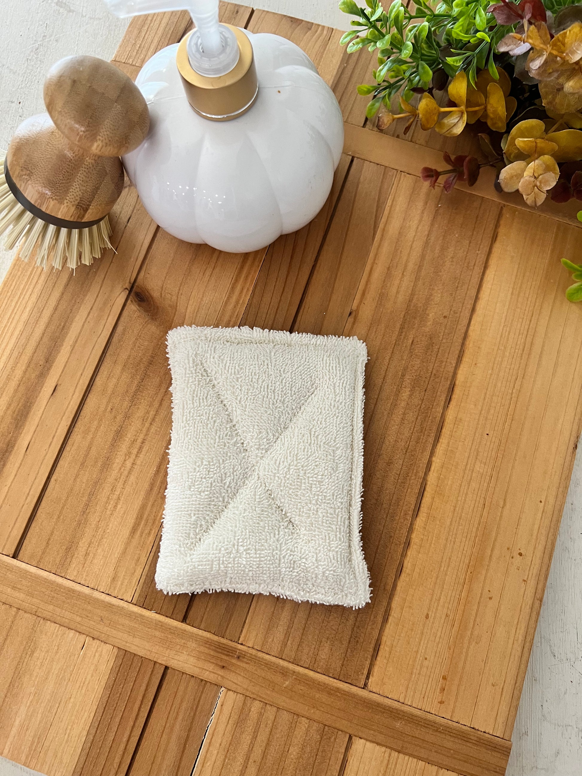 Handmade, washable, durable sponge that can be used and washed over and over! UnSponges are handmade with high quality materials in cute patterns. Made from 100% terry cloth for high absorbency and soft washing surface, thin layer of eco recycled foam to absorb and make suds, cotton print for absorbency and color, and mesh topper for gentle scrub.