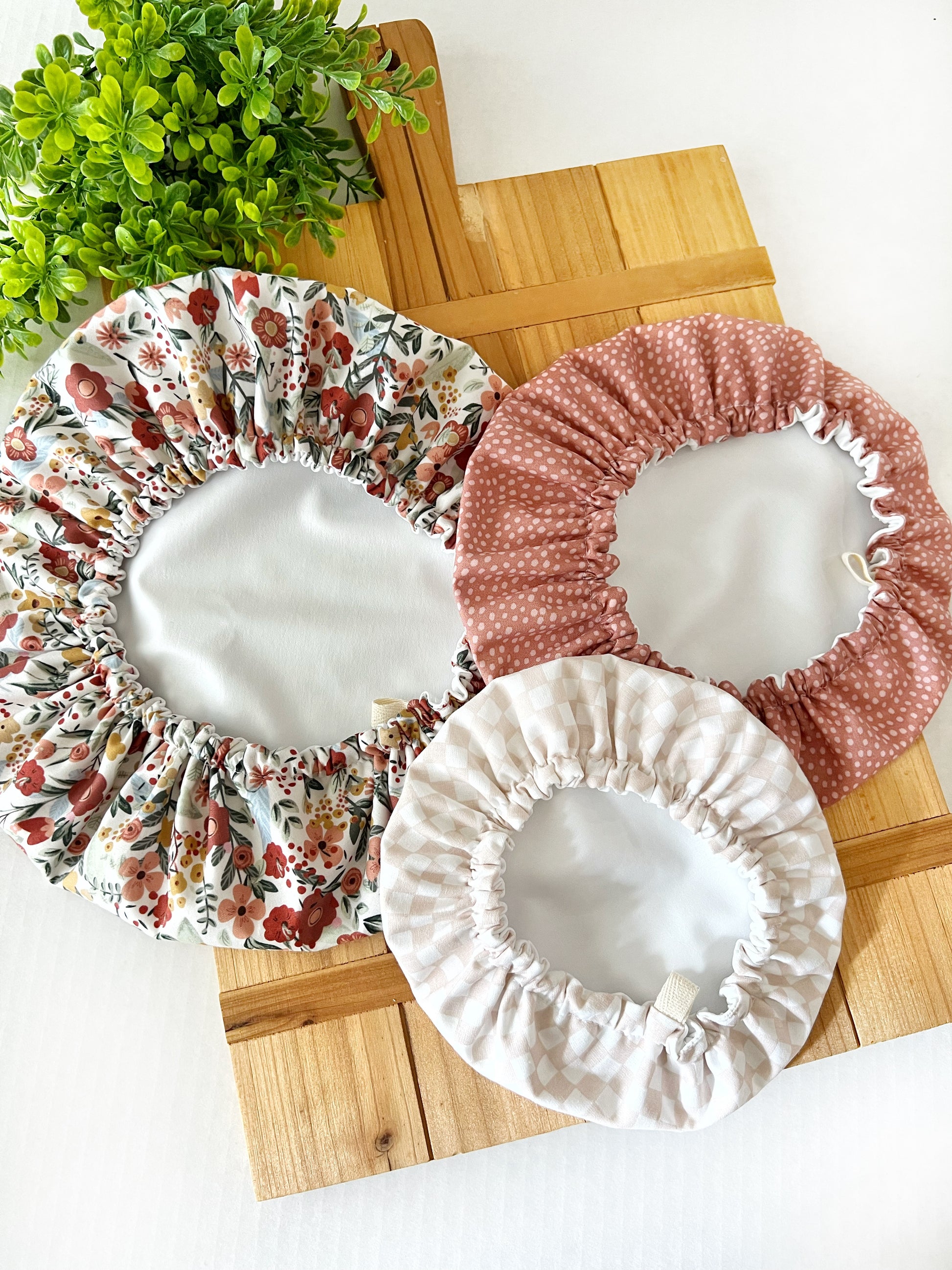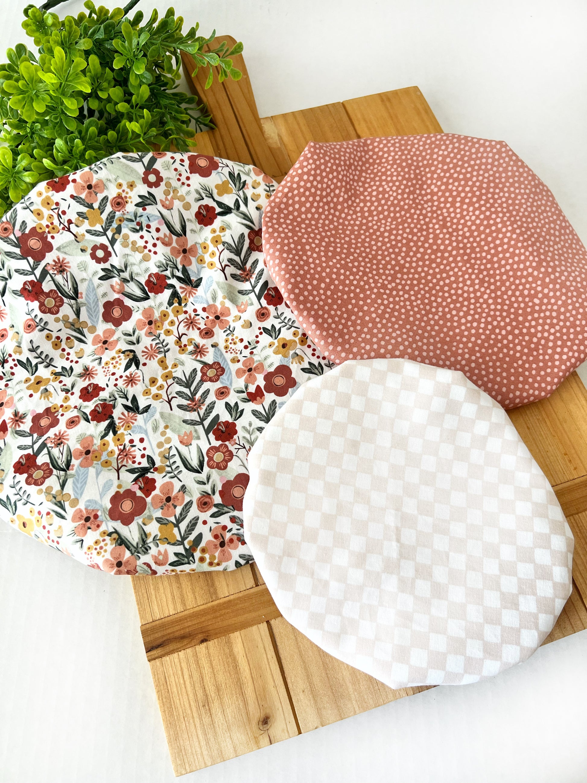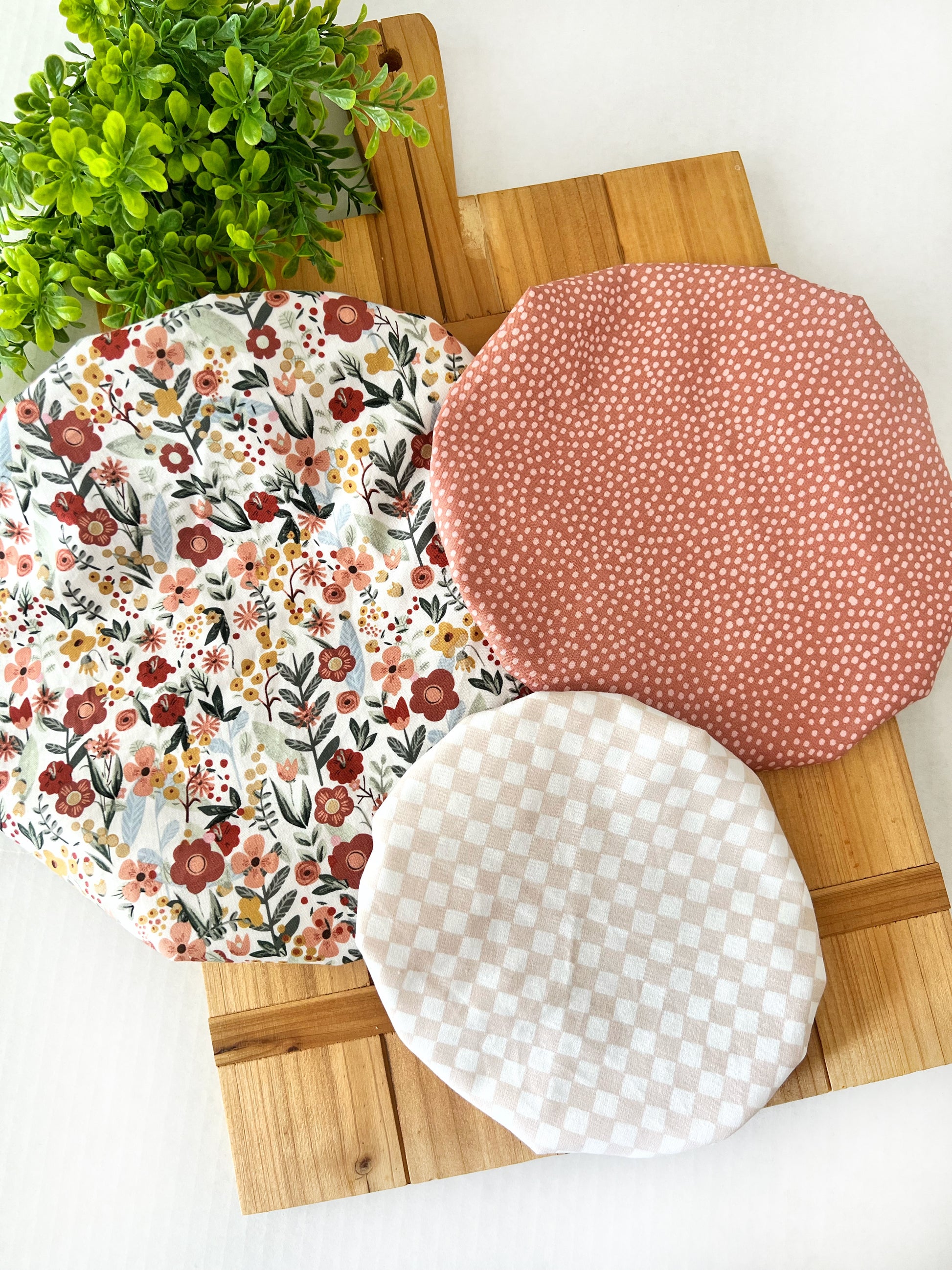 Going Green? We've got you covered. This is a set of three reusable, hand crafted bowl coverings. Replace plastic wrap with these airtight, attractive bowl covers. Simply machine wash and pop them in the dryer to re-use for years to come. This specialty fabric is water and odor resistant and will keep your foods fresh for days. The elastic band holds tight and allows coverage for bowls 5-10” inches in diameter.