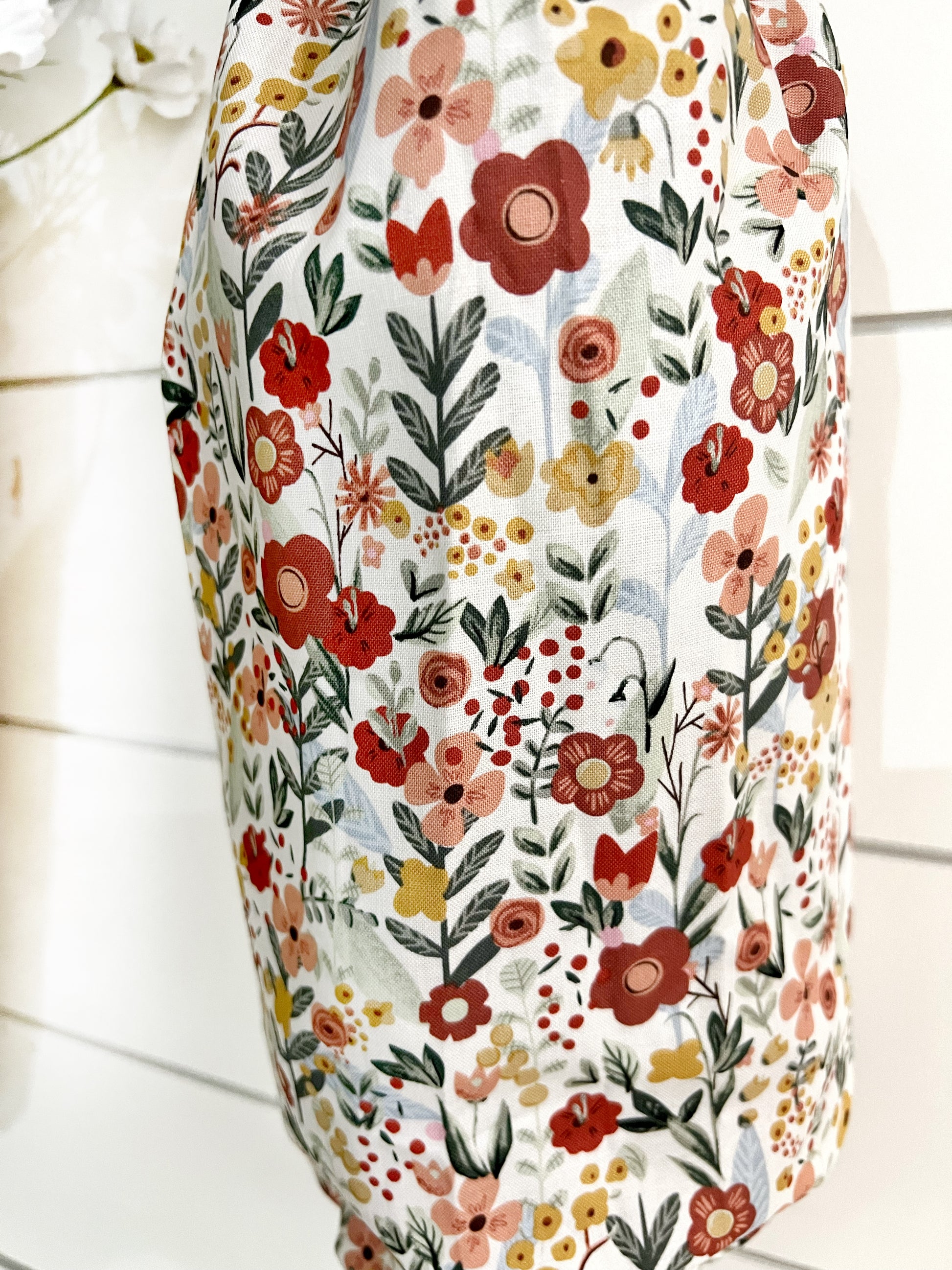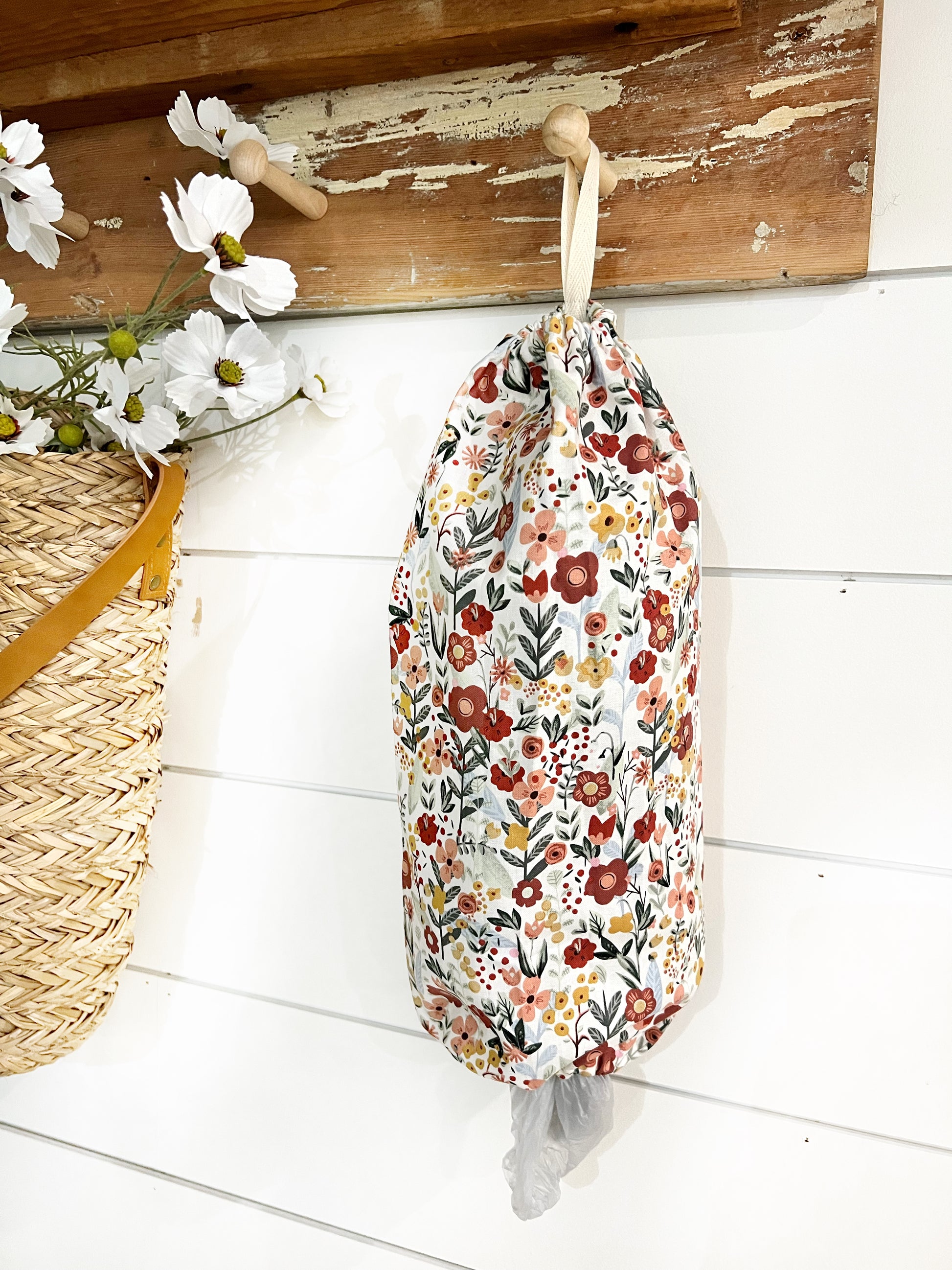Get those plastic grocery bags organized with an adorable handmade bag dispenser. Stores 30+ plastic bags, depending on how you stuff them. Both top and bottom have elastic band sewn in to prevent bags from falling out.