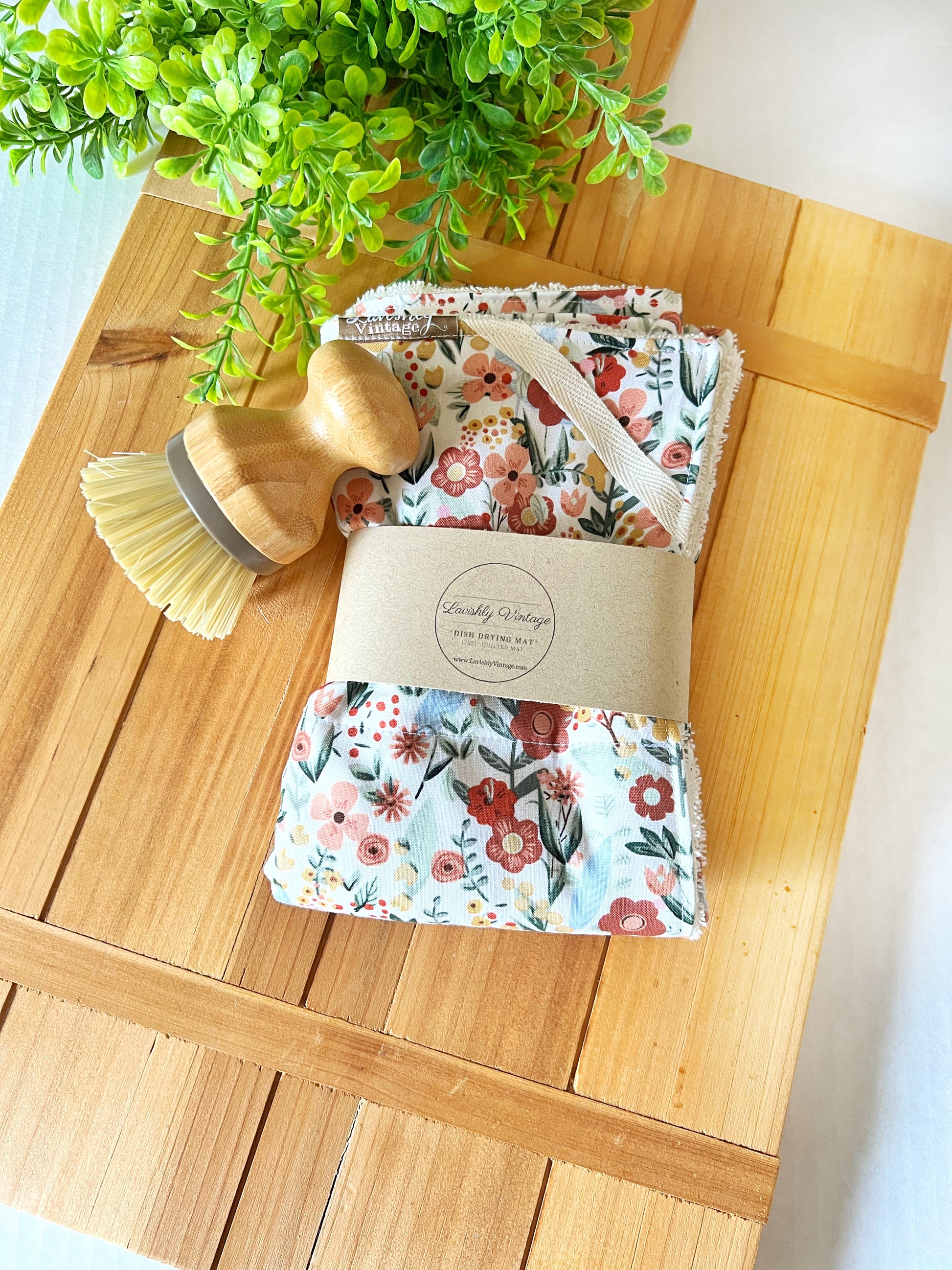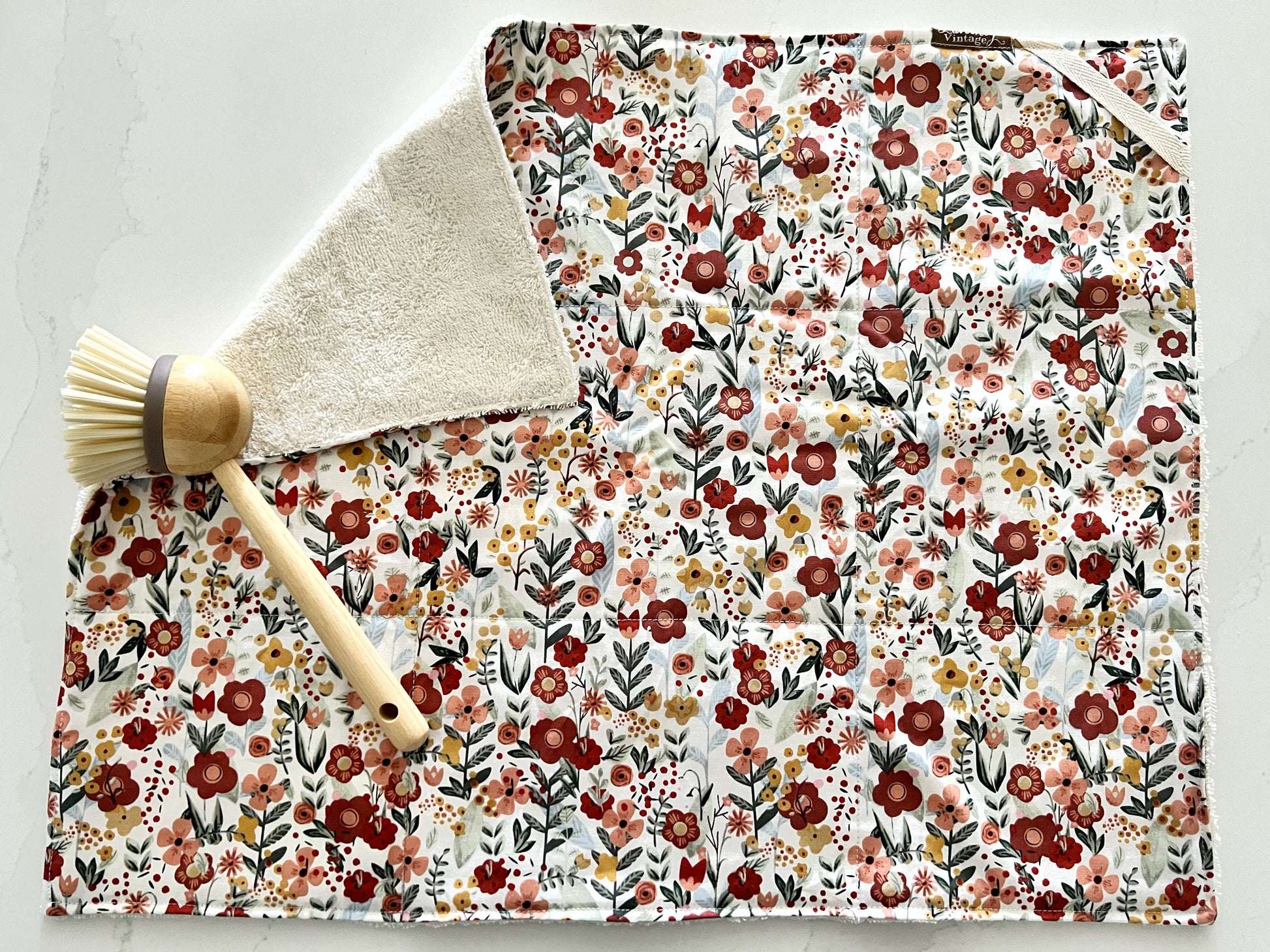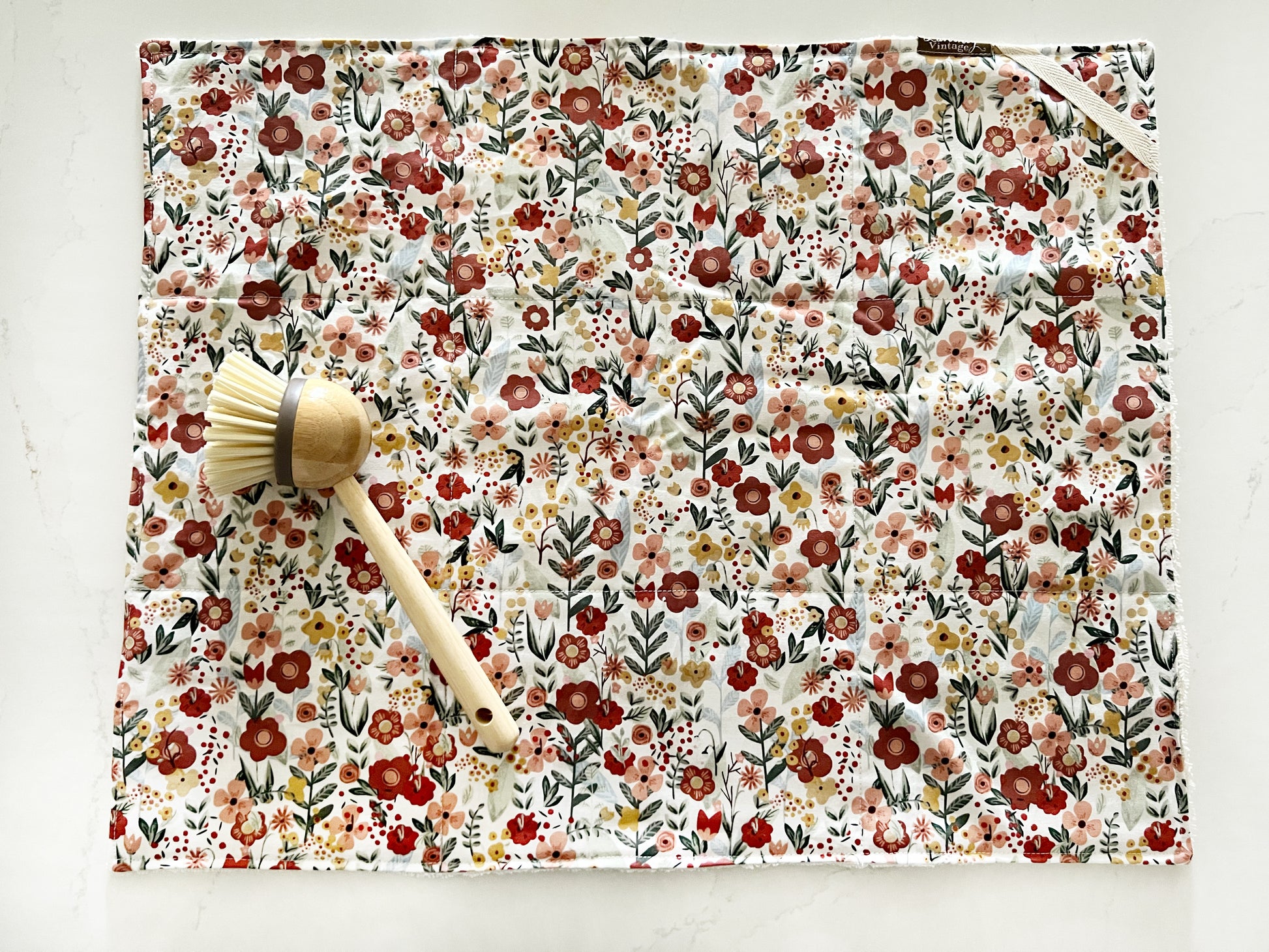 100% cotton Dish Drying Mat featuring absorbent cotton and terry cloth.